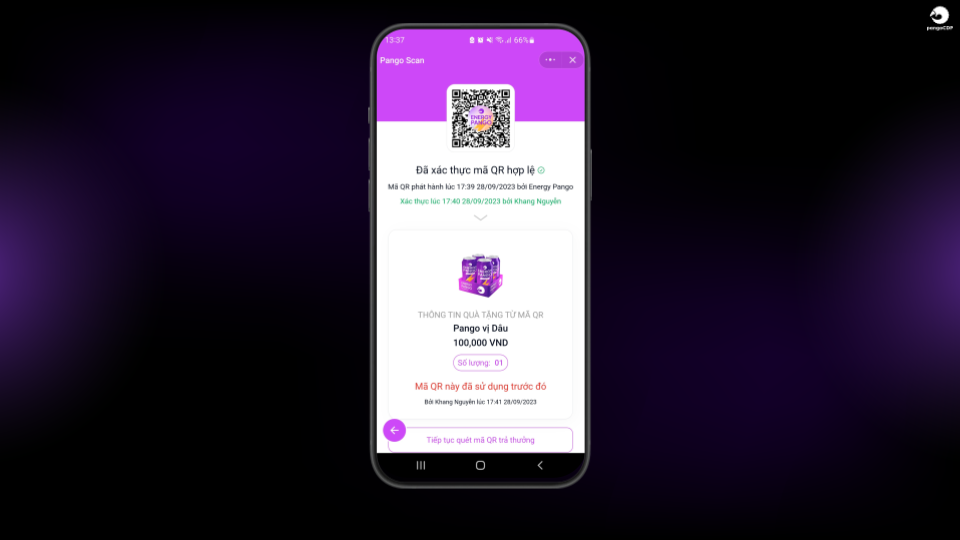 Nhận diện mã QR đã trả thưởng
