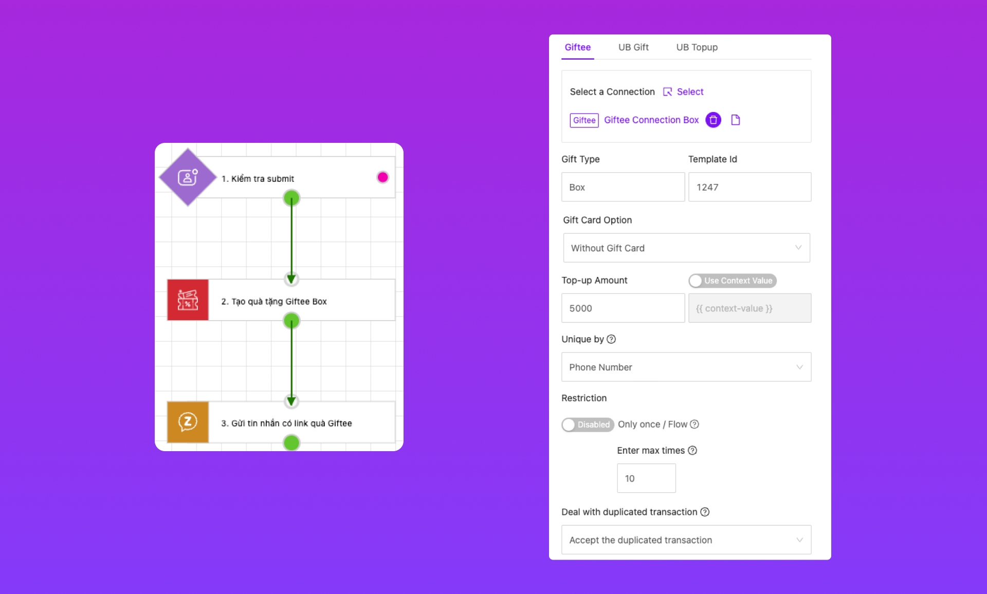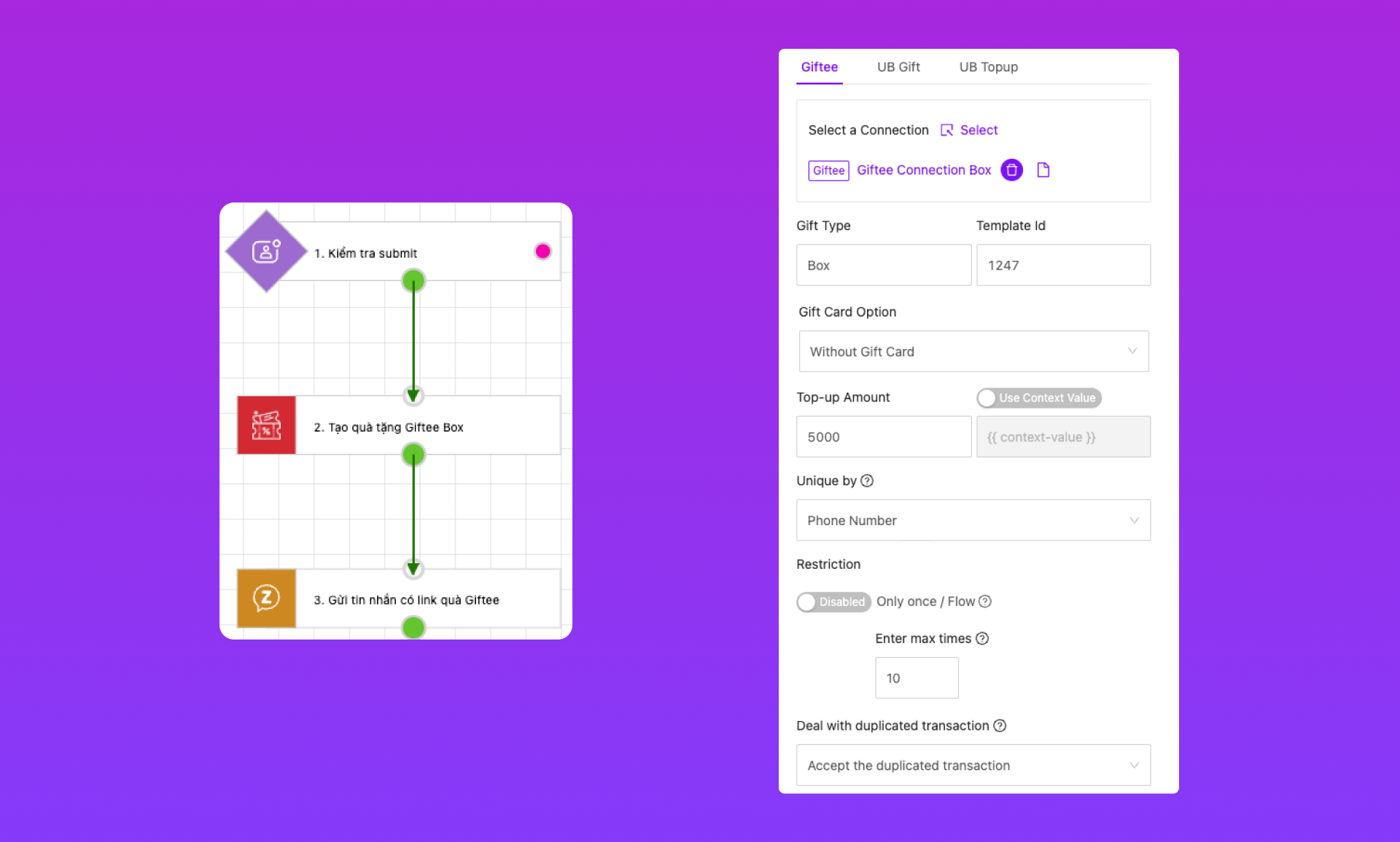 Template ID: nhập đúng ID trong Connection (được Giftee cung cấp)