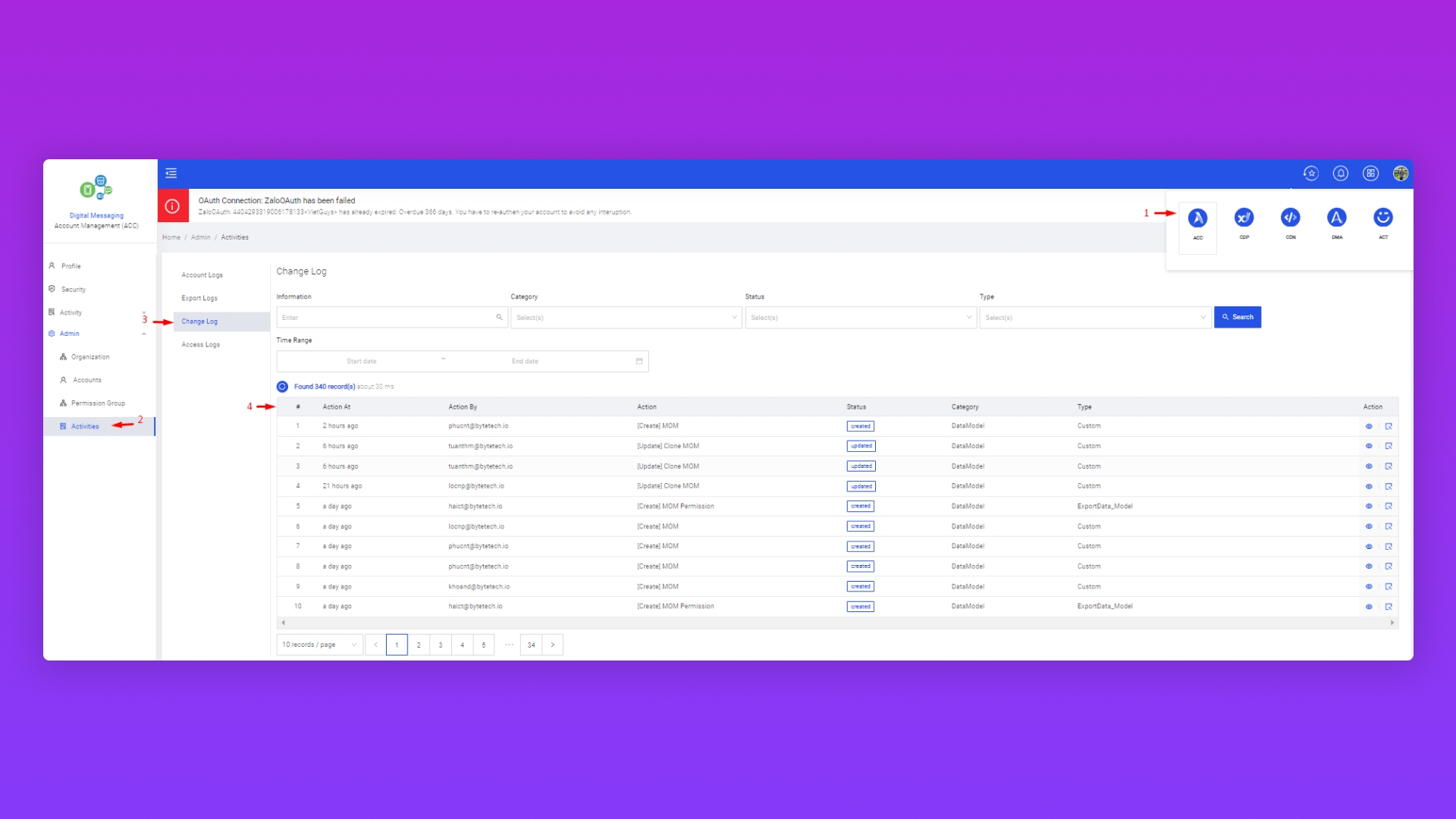 Change Logs là nơi lưu trữ những hành động được cập nhật trong quá trình thao tác trên hệ thống PangoCDP