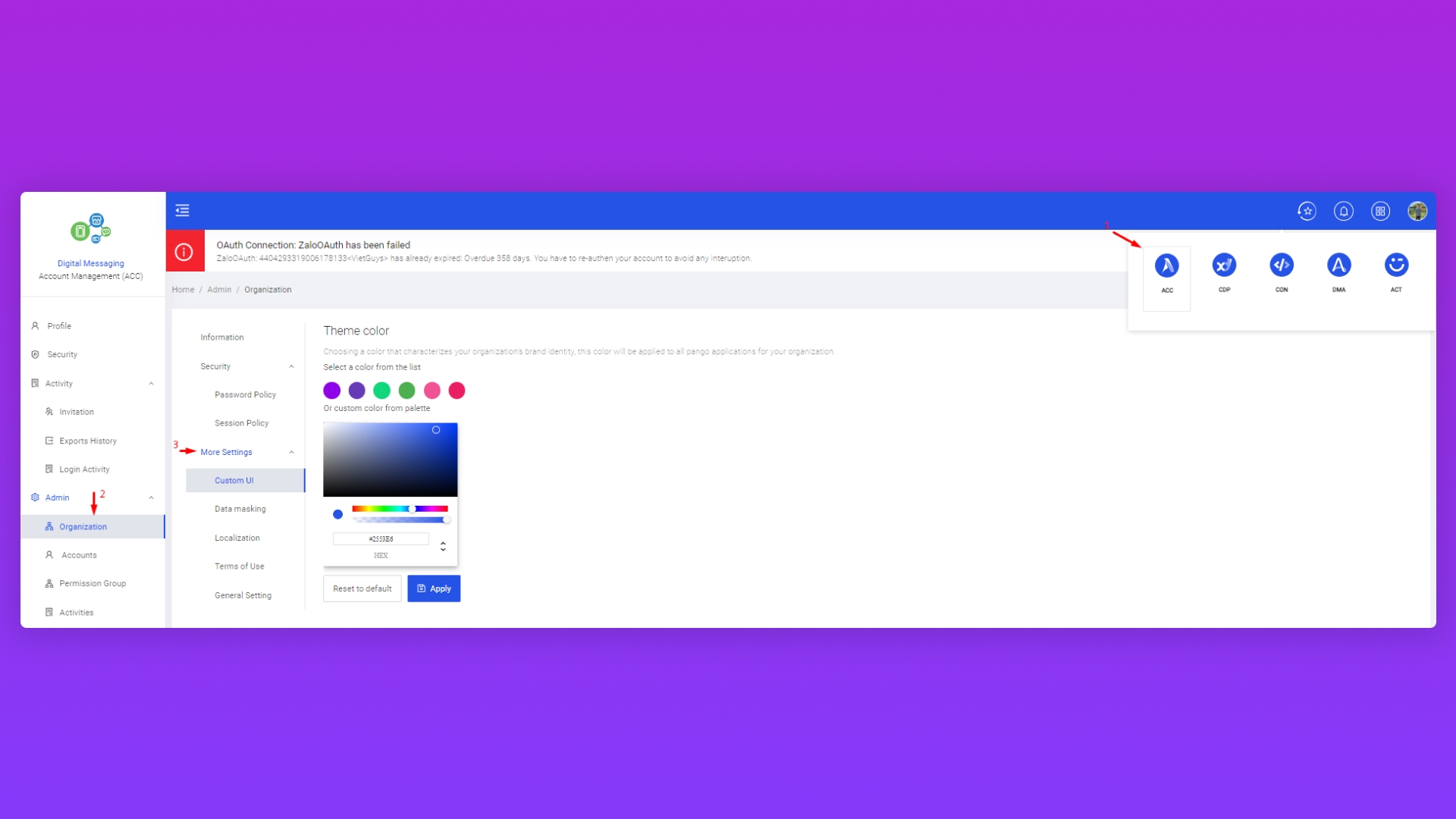 Custom UI có thể tùy chỉnh, thêm hoặc bớt những thông tin có sẵn mặc định trên hệ thống PangoCDP như màu sắc, thời gian, chính sách.