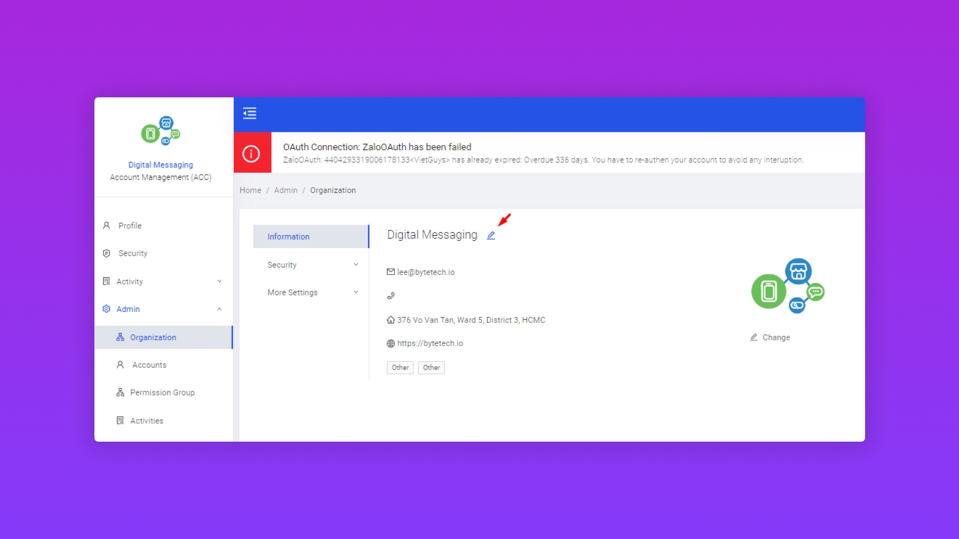 Tài liệu hướng dẫn thao tác thay đổi thông tin doanh nghiệp khi dùng platform PangoCDP