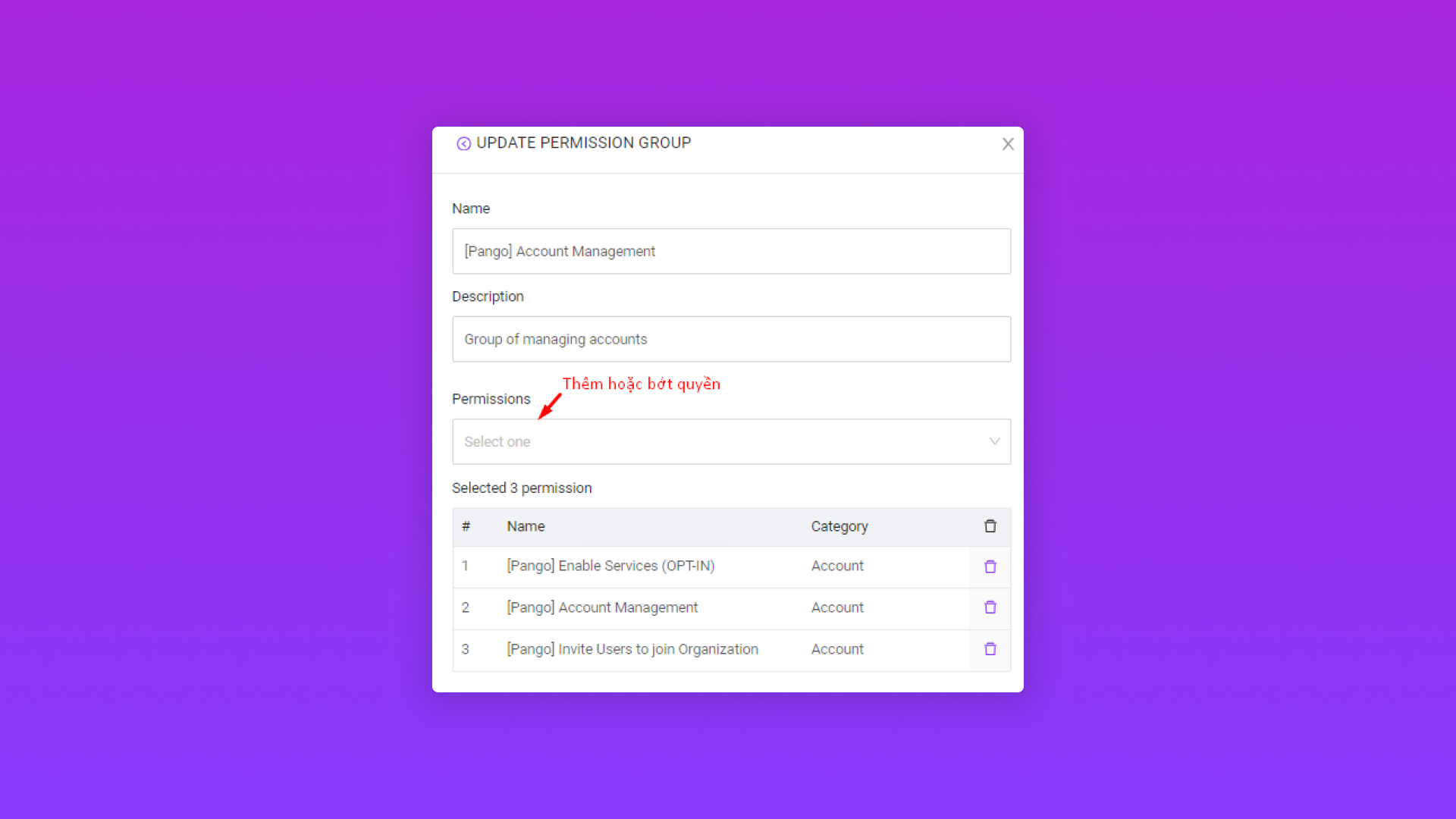 Bước 2: Chỉnh sửa nhóm quyền