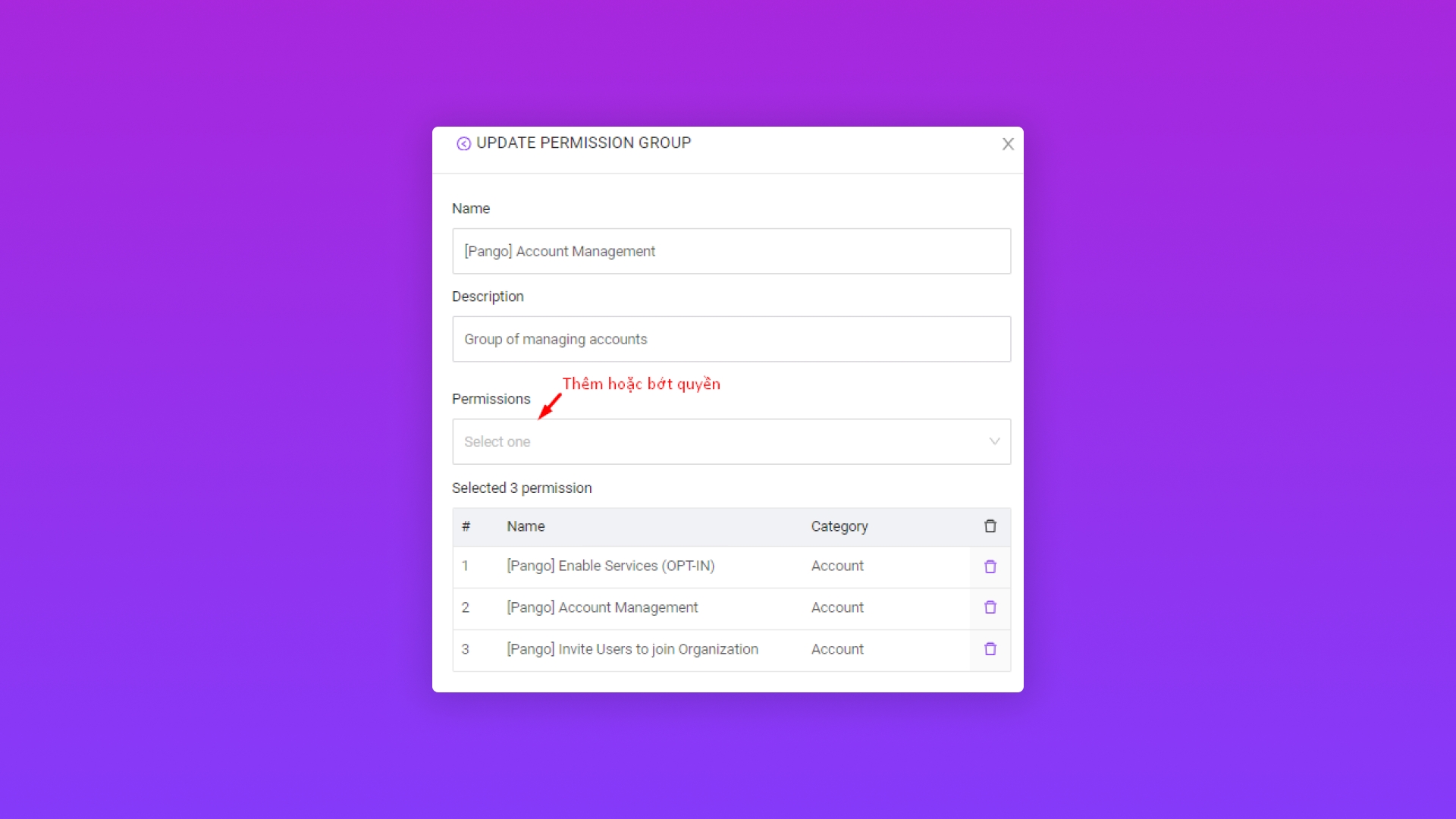 Gán quyền cho user dựa trên danh sách quyền có sẵn