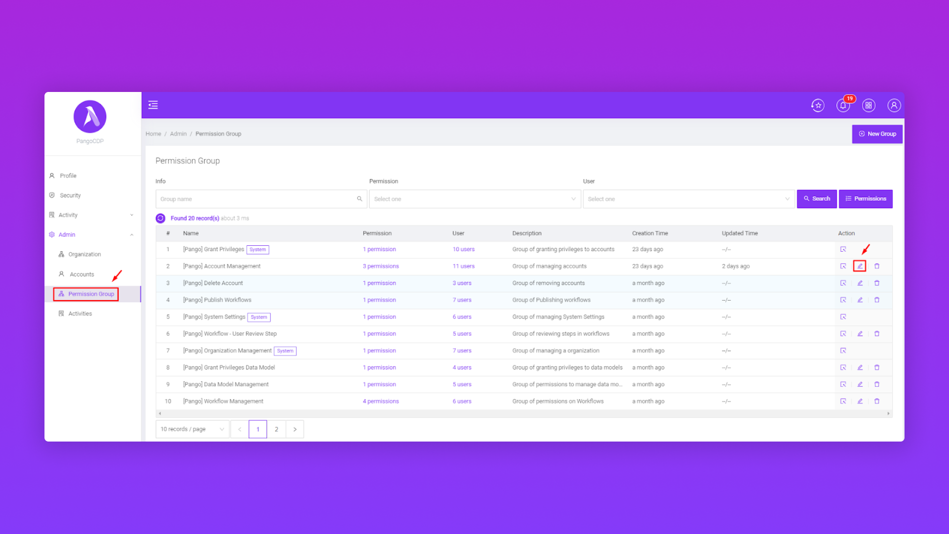 Tạo Permission Group