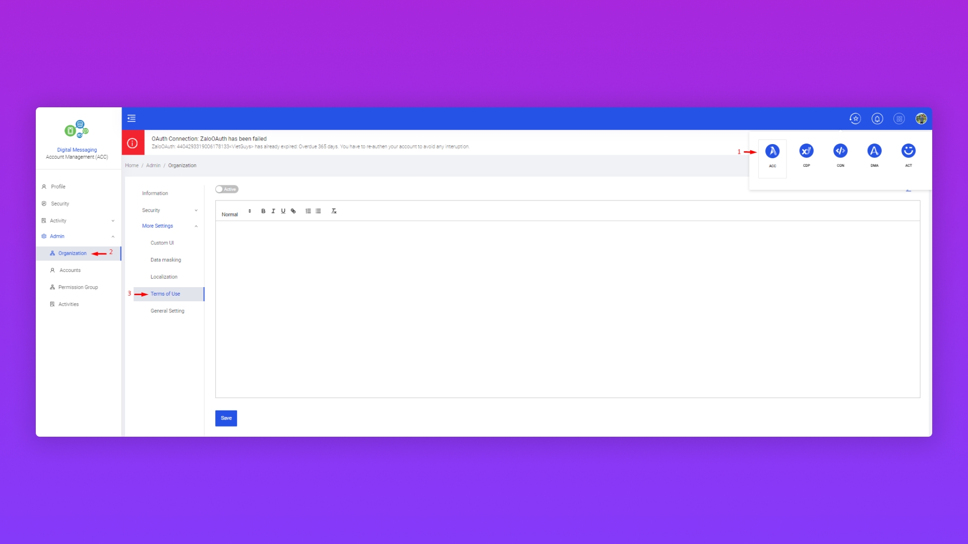 Tài liệu hướng dẫn bạn các thao tác cài đặt Terms of Use trên PangoCDP