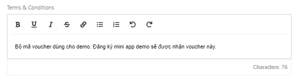 Những lưu ý cho user khi sử dụng voucher được cấp ra ví dụ như thời hạn, điều kiện sử dụng voucher,...