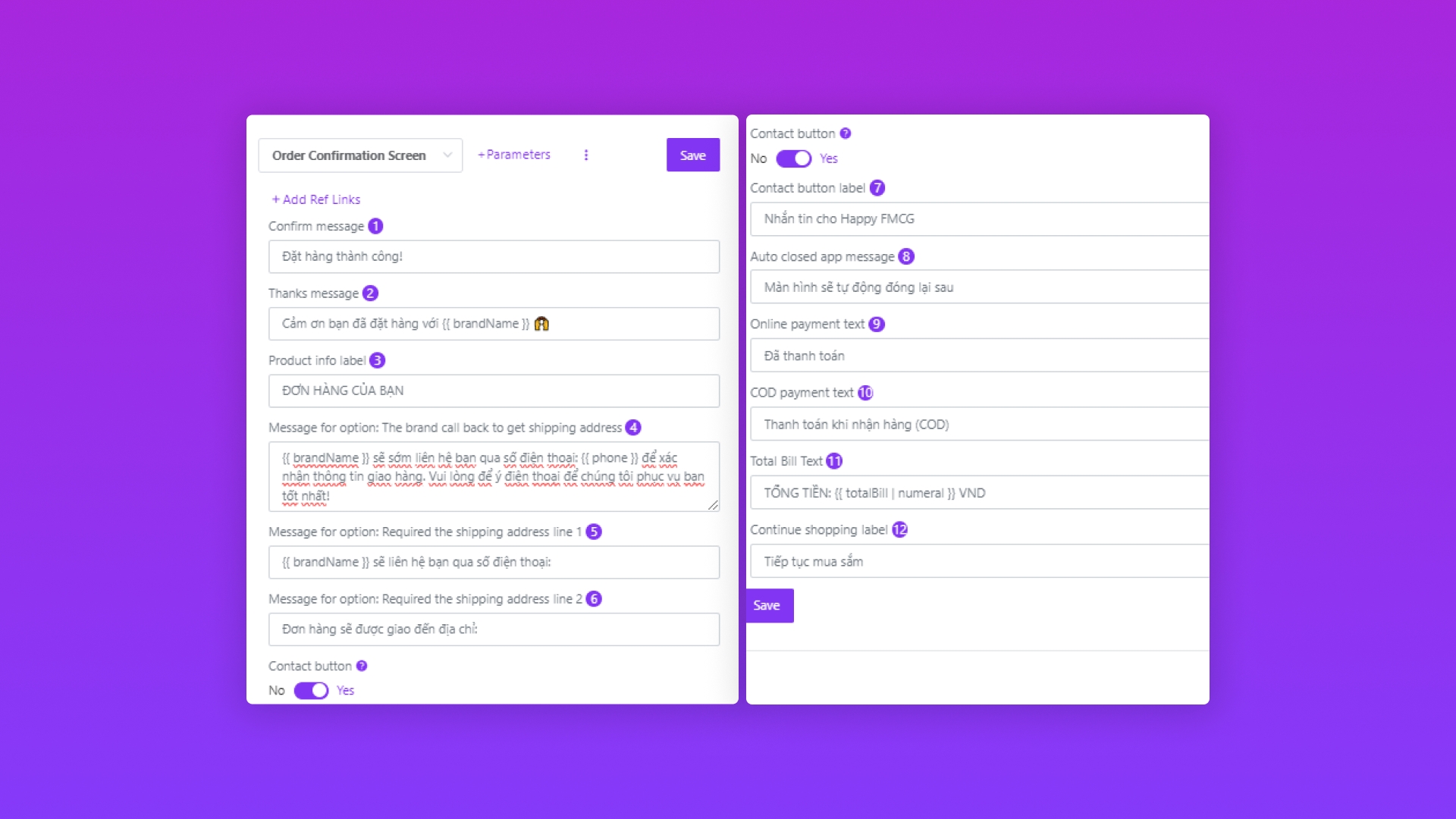 Thiết lập thông tin tại mục Custom UI / Order Confirmation Screen