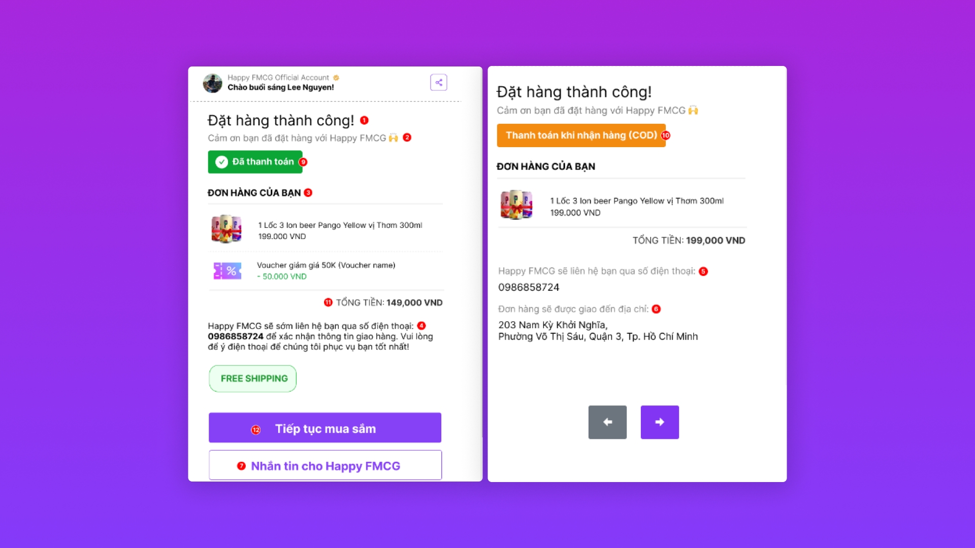 Thay đổi nội dung "Đặt hàng thành công"