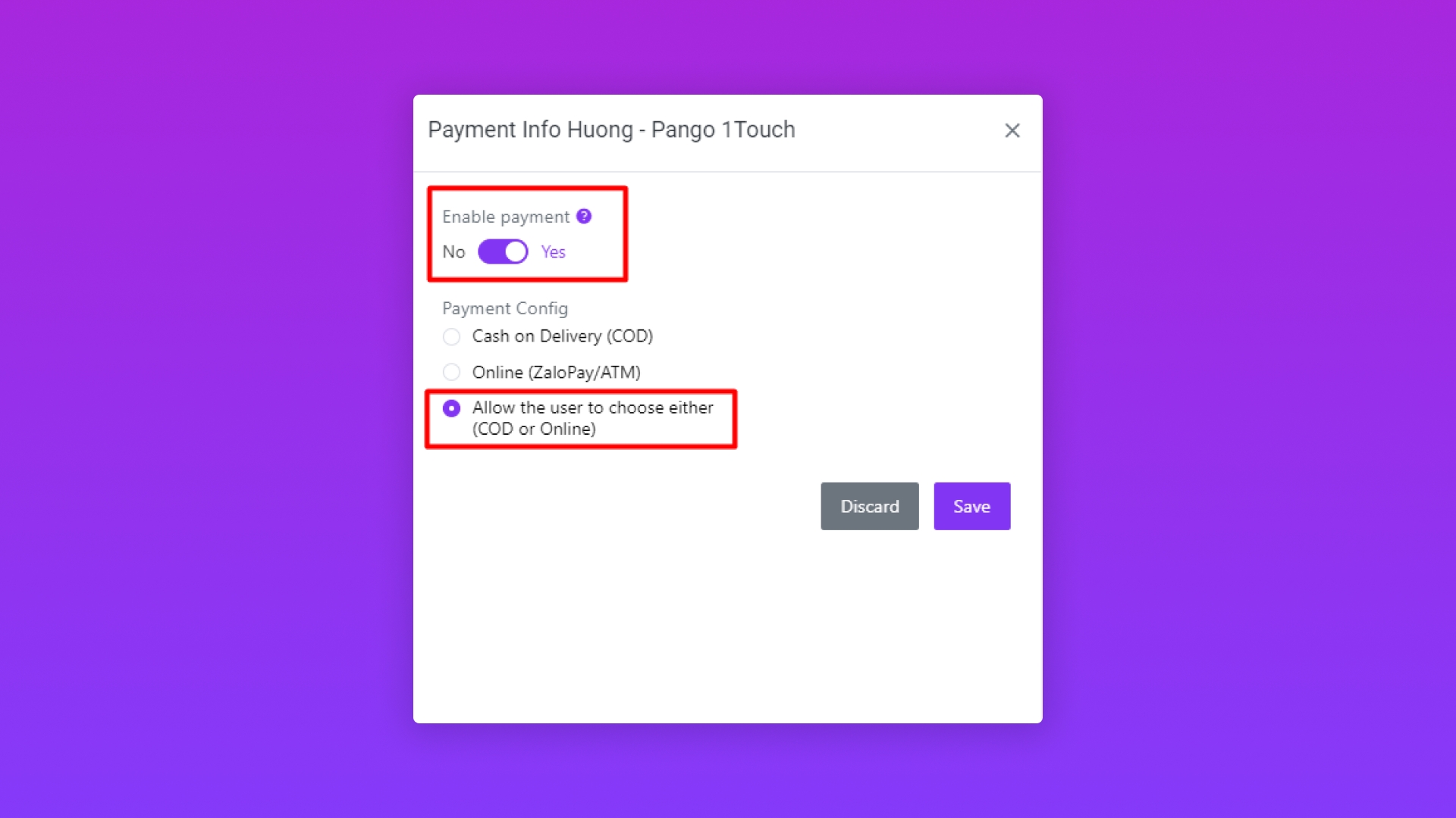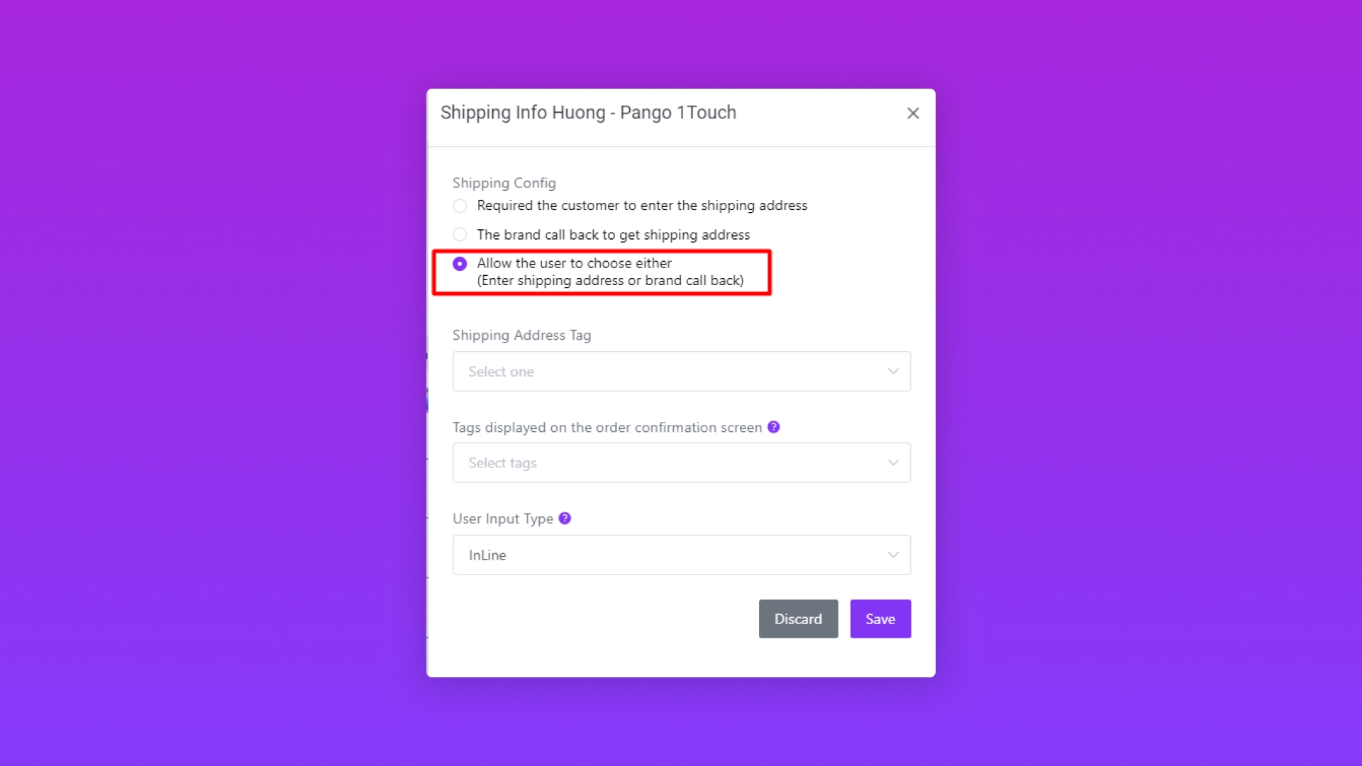 User chọn - Nhập địa chỉ nhận hàng - Nhãn hàng gọi lại bạn (Trường hợp set up <1> - Xem bên dưới)