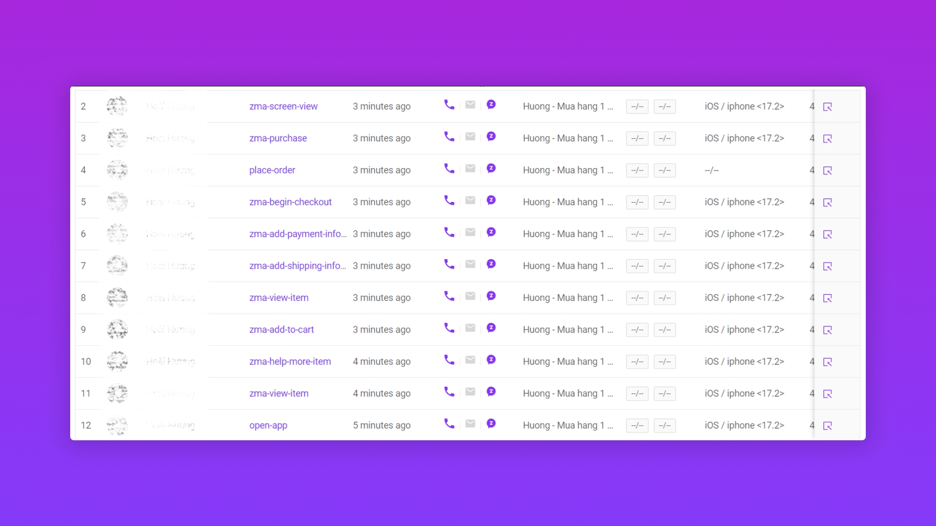 Event tự phát sinh sau khi mở app hoặc sau event zma-purchase