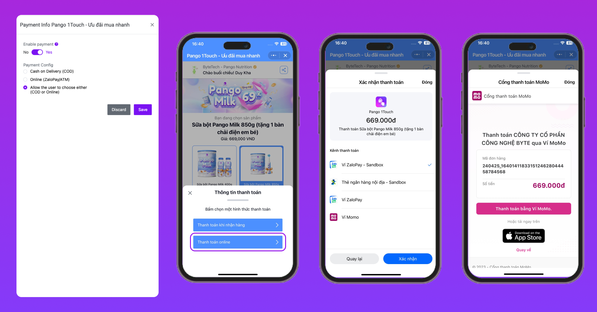 Hướng dẫn thiết lập và giải thích ý nghĩa khi thiết lập Pango 1Touch - Payment Config tại Activation trên hệ thống PangoCDP.