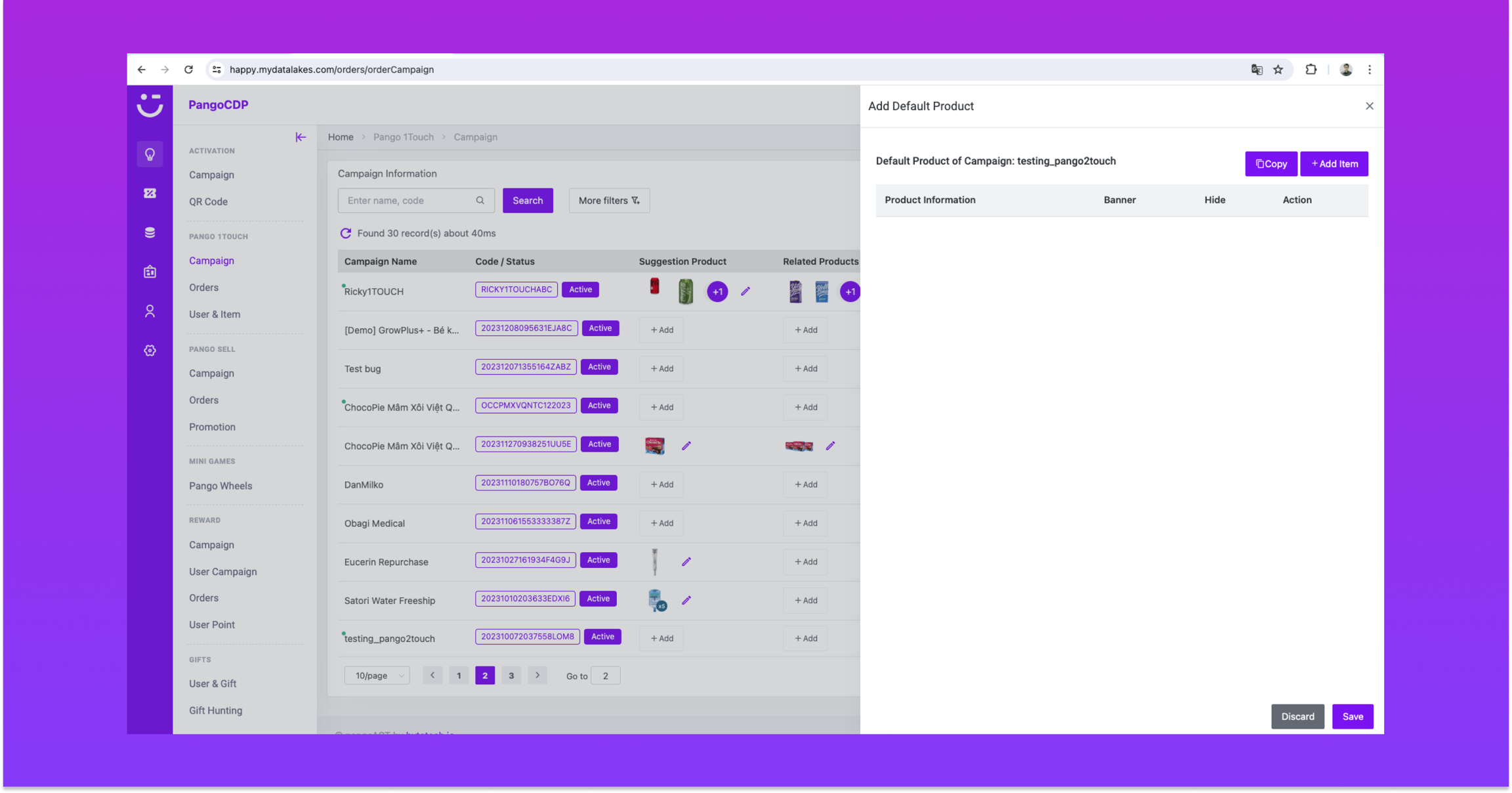 Tại Module Activation quản lý Campaign 1Touch