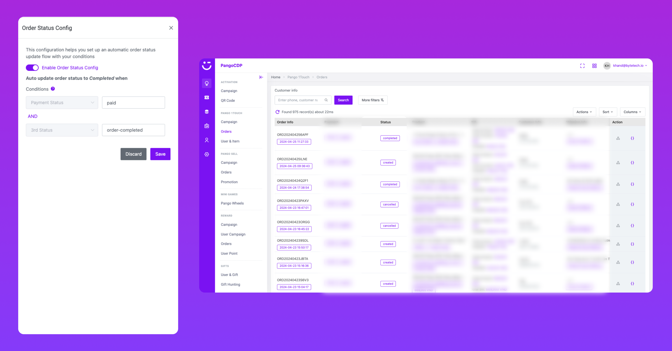Cấu hình cho phép tự động cập nhật trạng thái đơn hàng của Pango 1Touch sang "Complete" (hoàn thành đơn hàng).