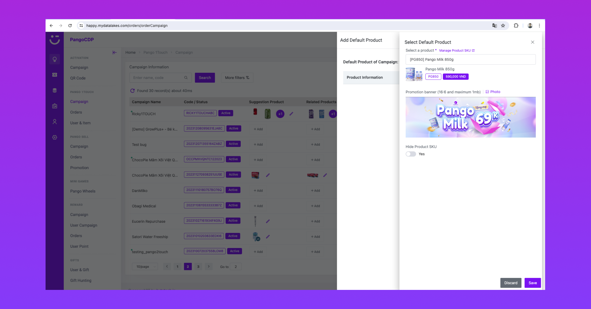 Chọn Pango 1Touch / Campaign (tại đây)