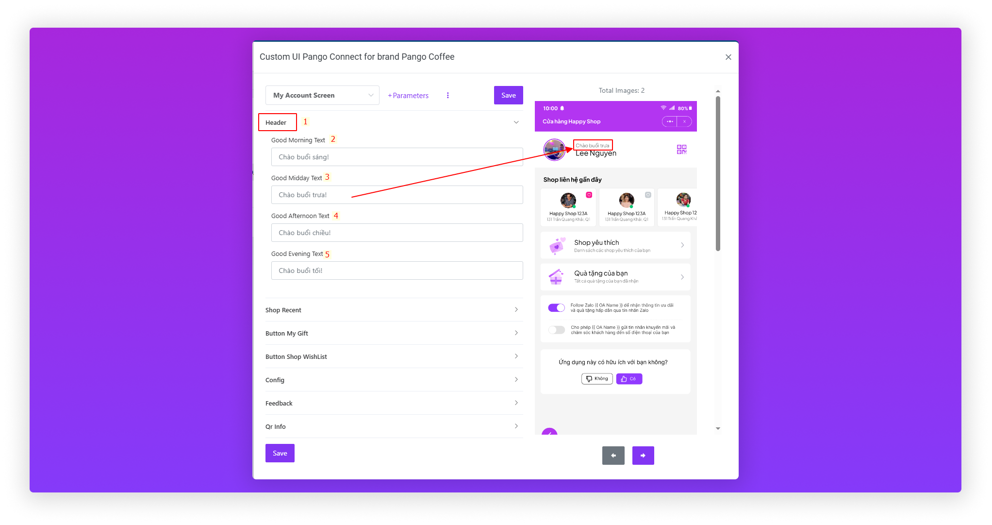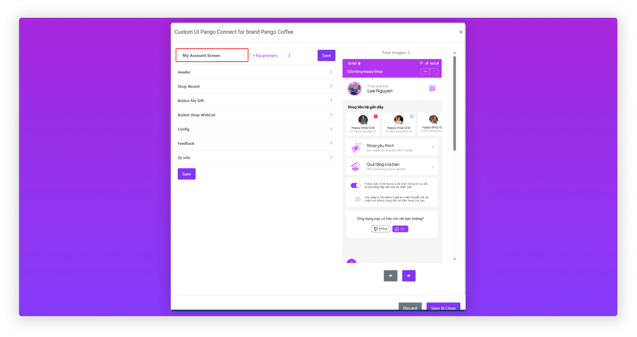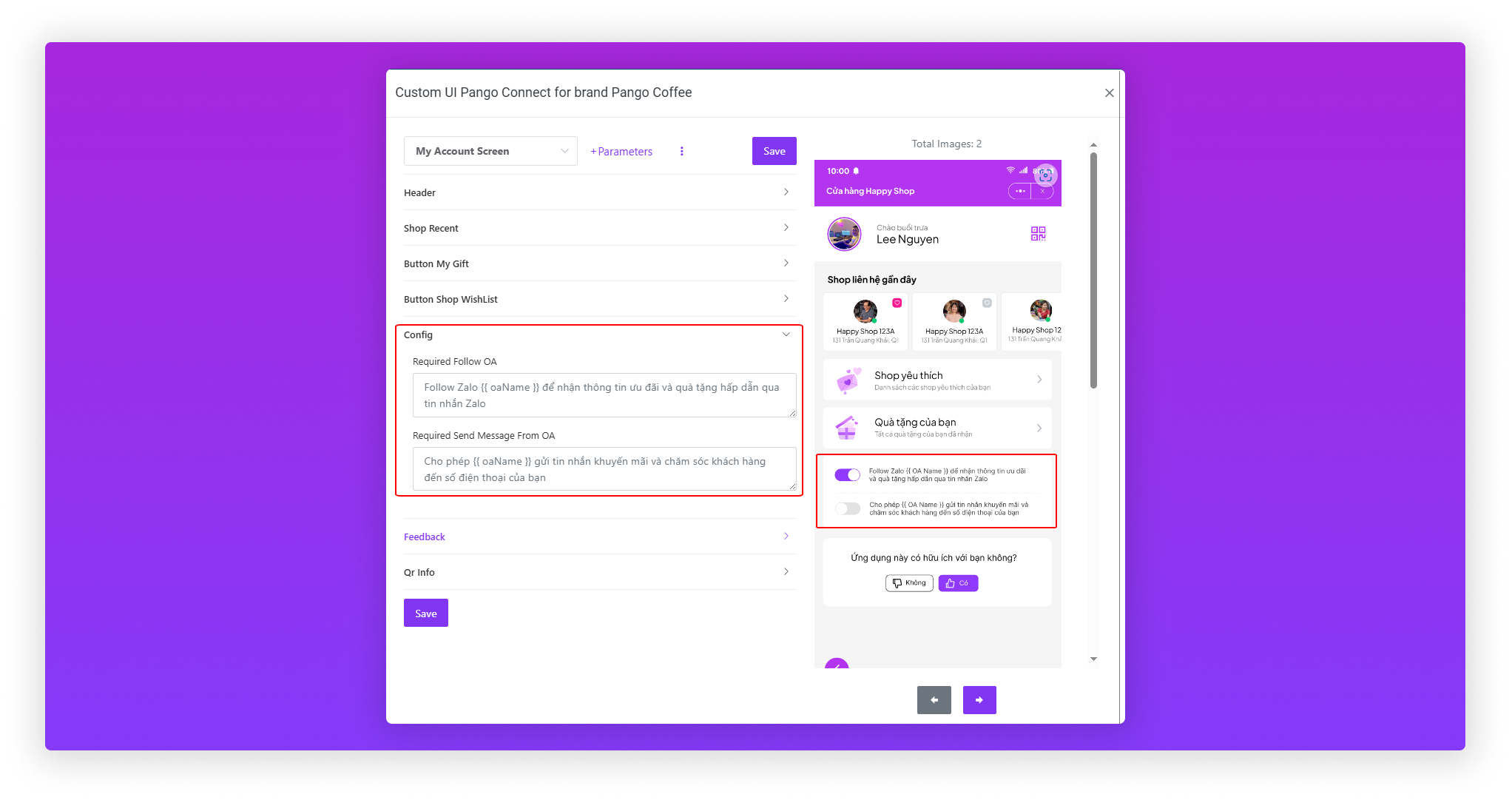 Bước 2: Thiết lập Custom UI của My Account Screen trên Pango Connect