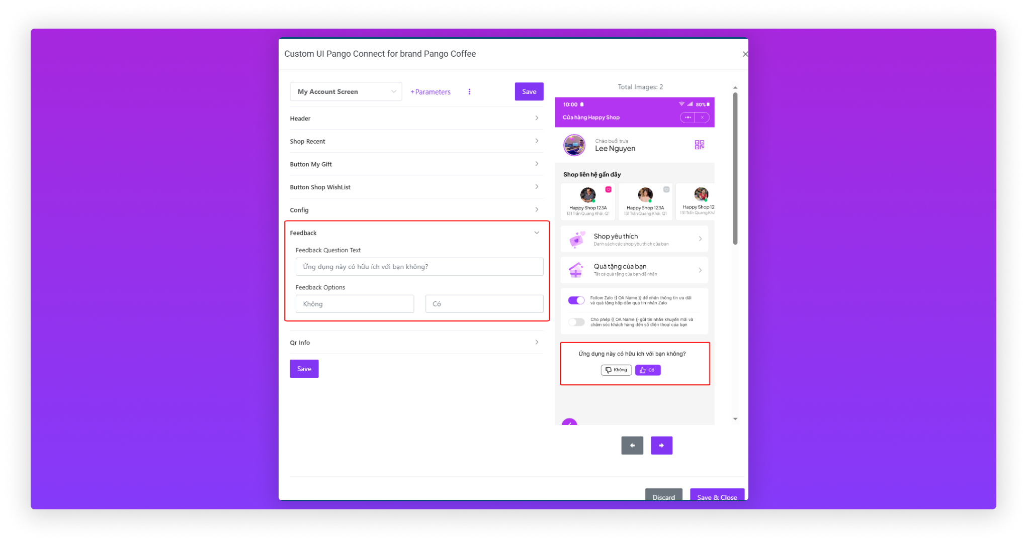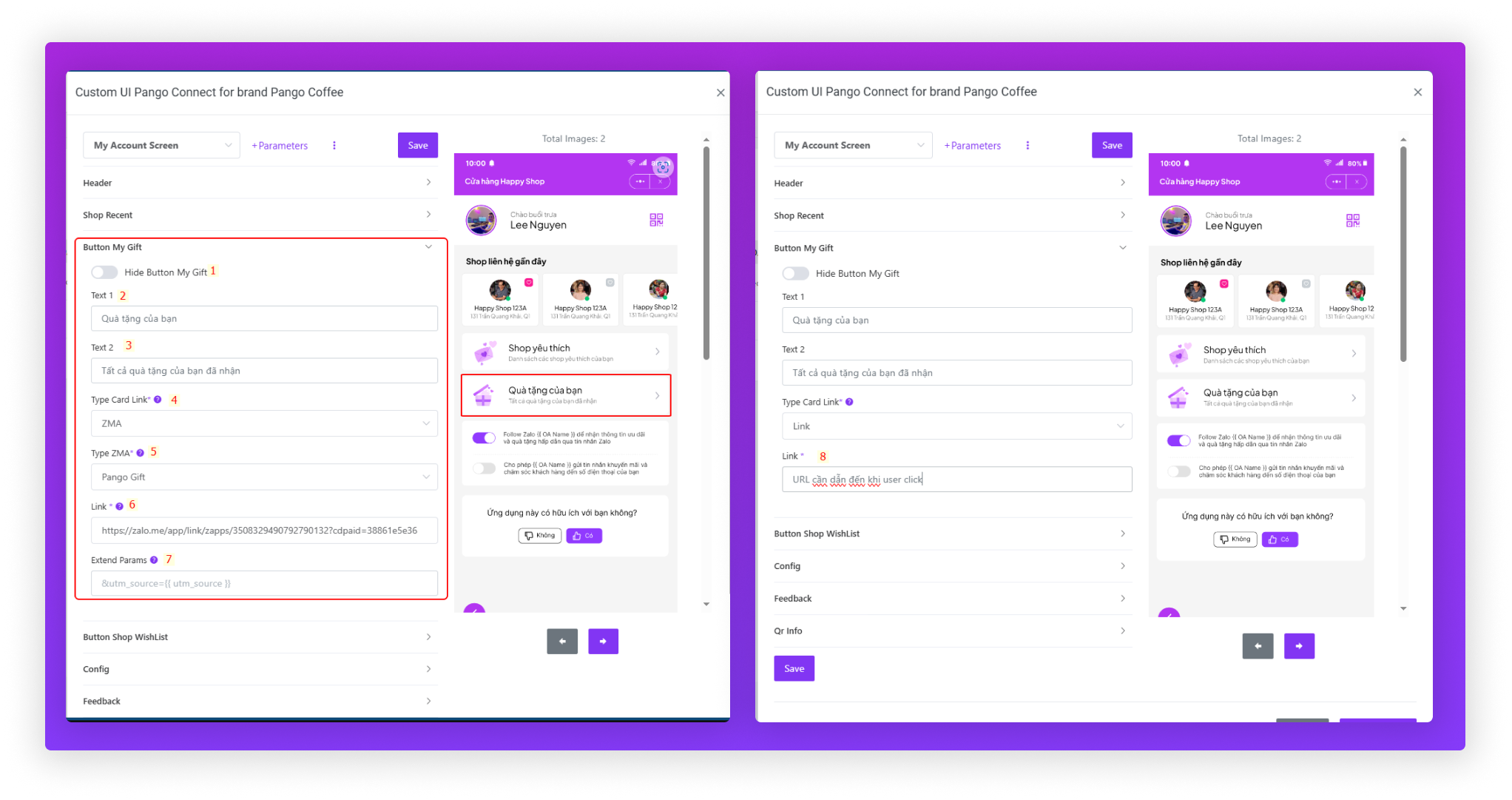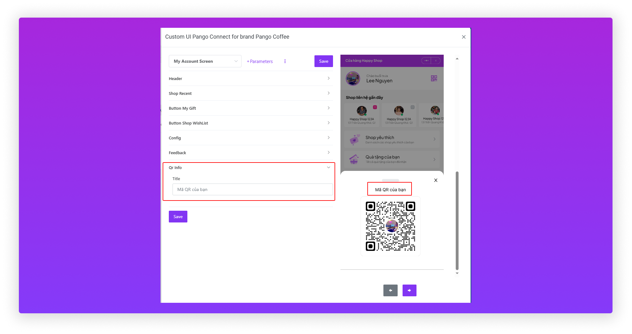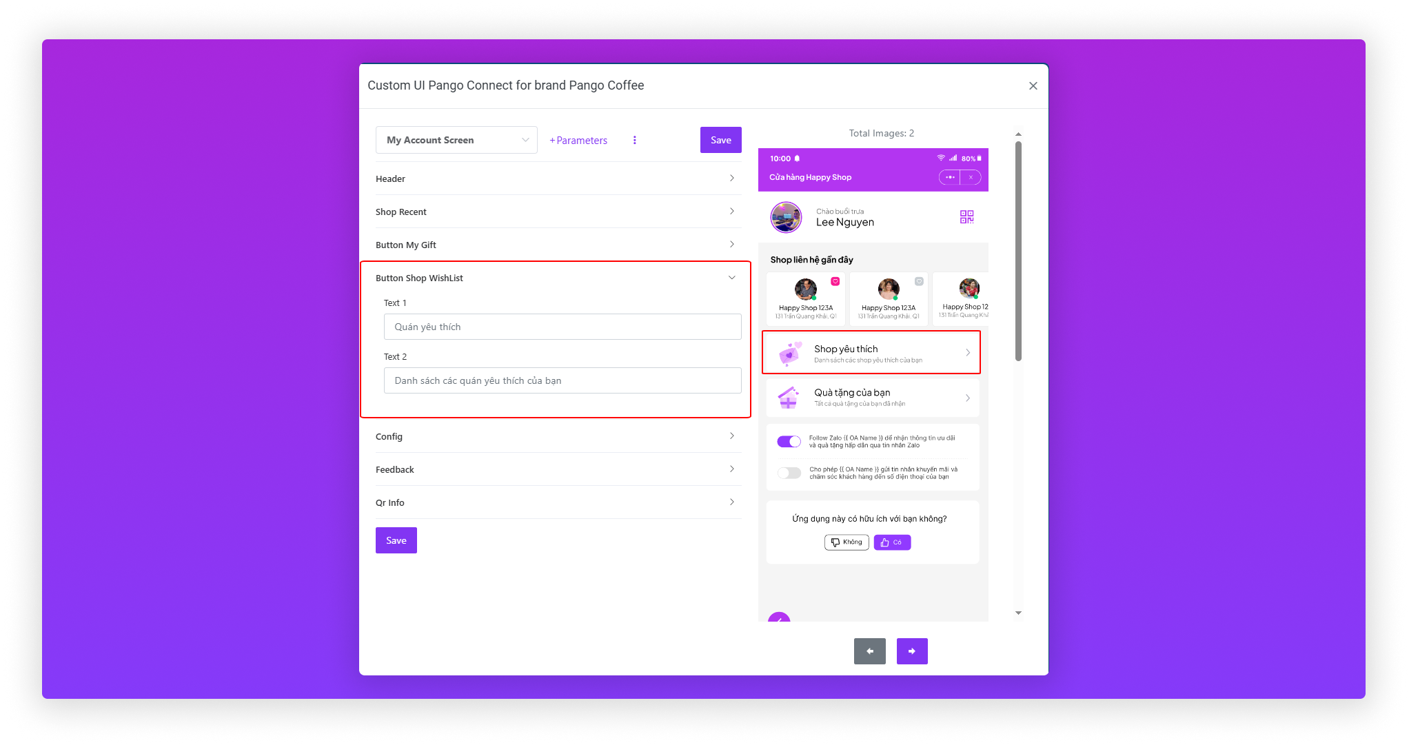 Bước 2: Thiết lập Custom UI của My Account Screen trên Pango Connect