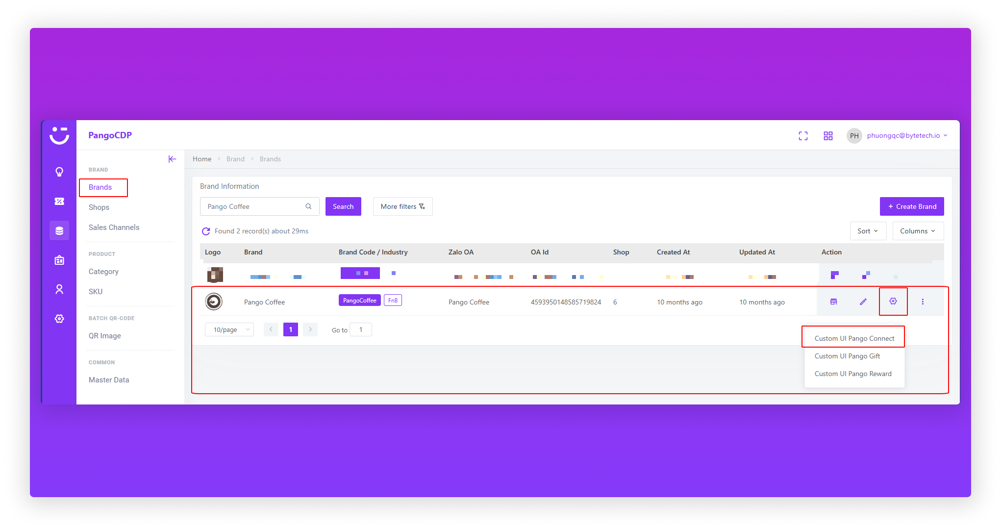 Bước 1: Truy cập vào Custom UI Pango Connect