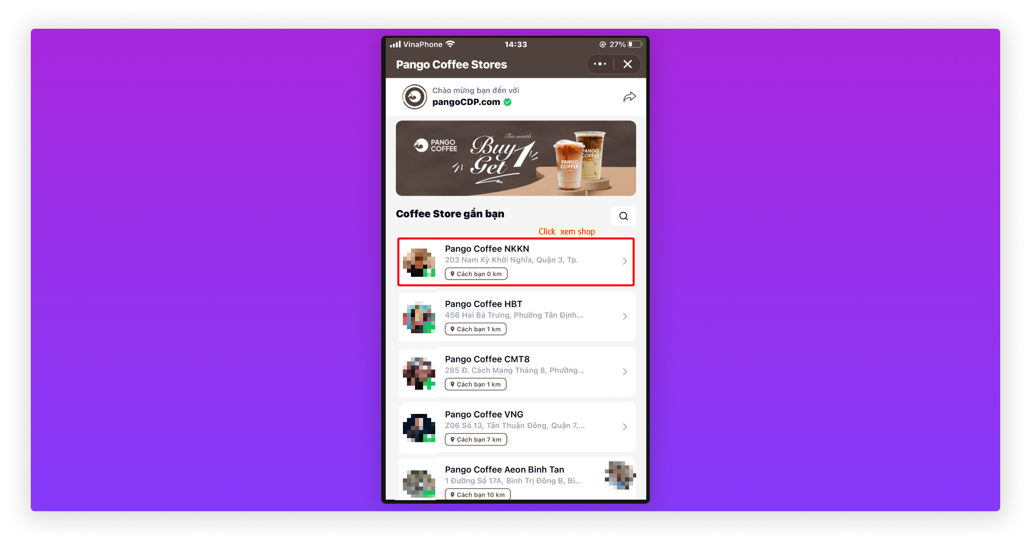 Các thao tác vào xem các event khi user tương tác với miniApp Pango Connect