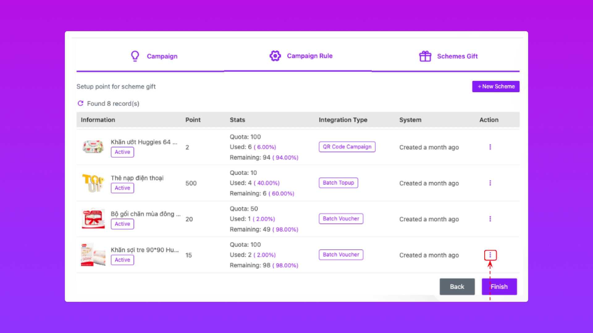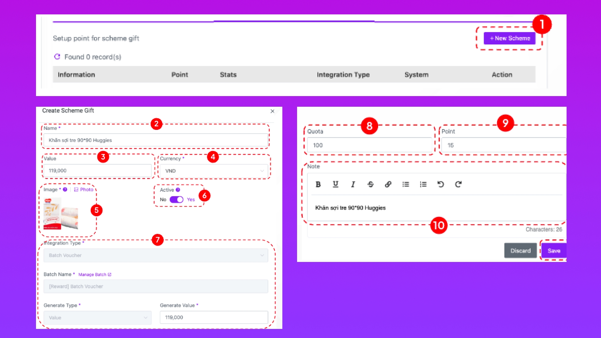 Tạo các Scheme quà tặng dùng để đổi trả cho Users bao gồm các bước: