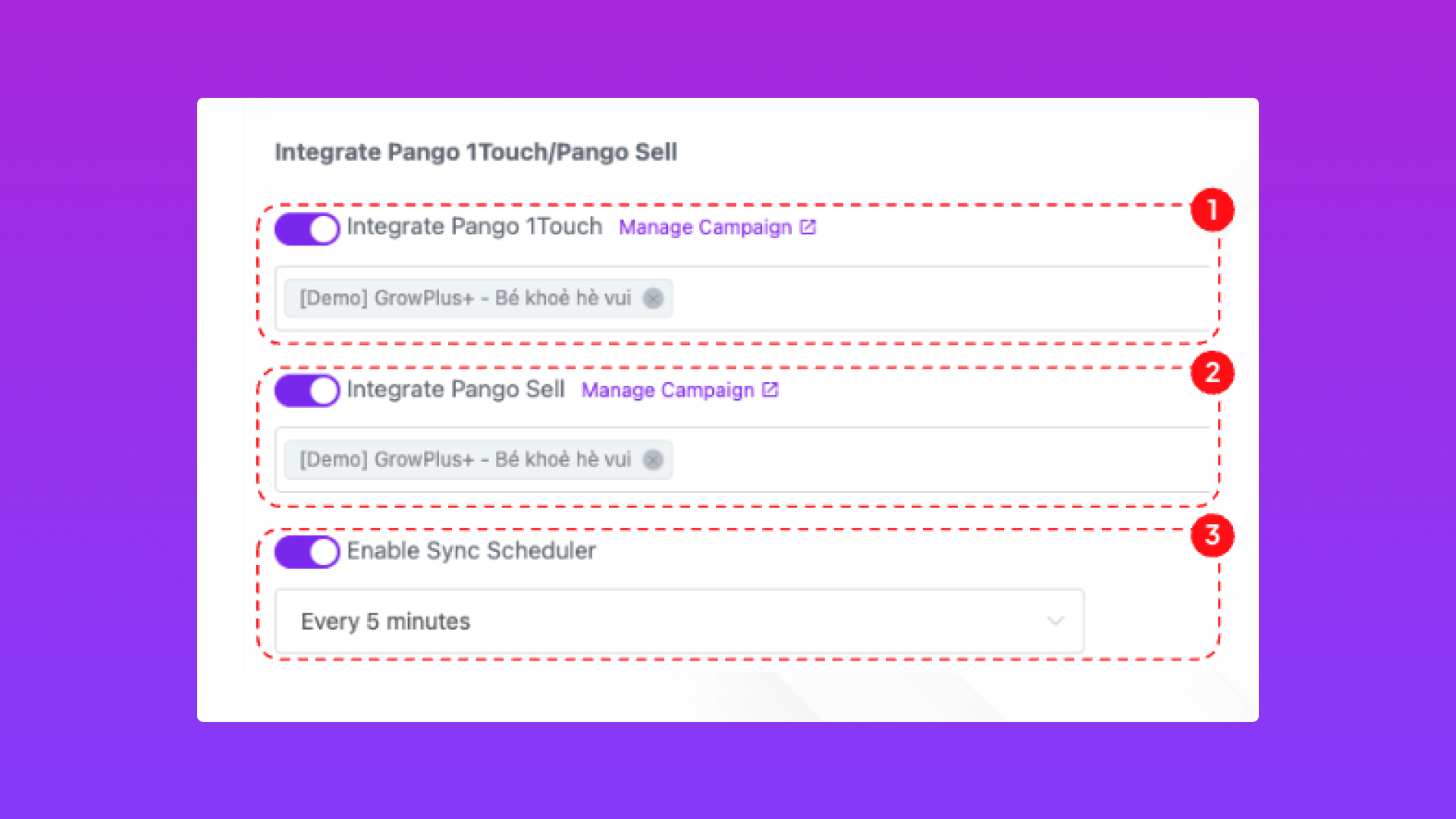 Công cụ bán hàng tích hợp cùng Pango Reward bao gồm: Pango 1Touch và Pango Sell