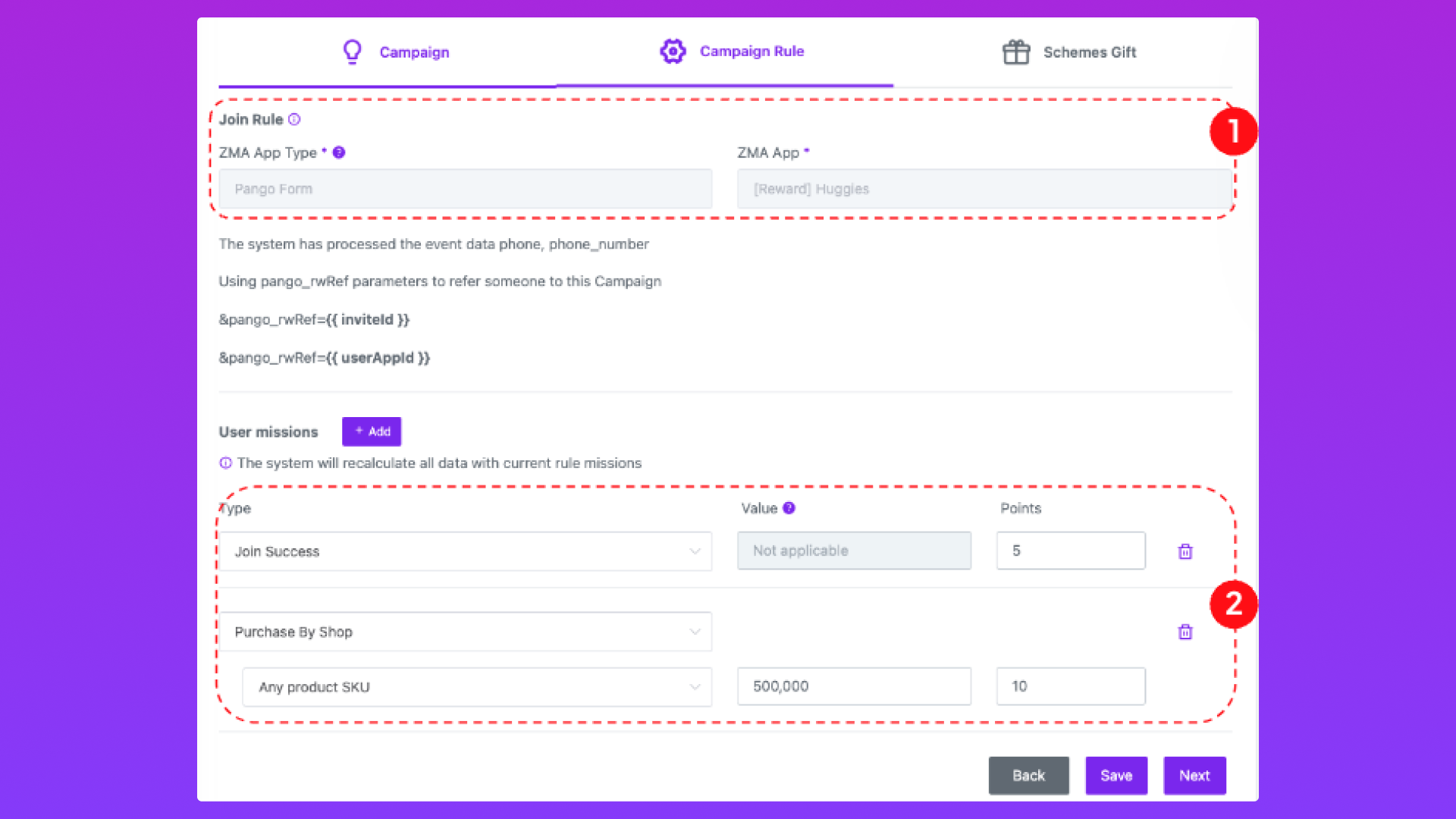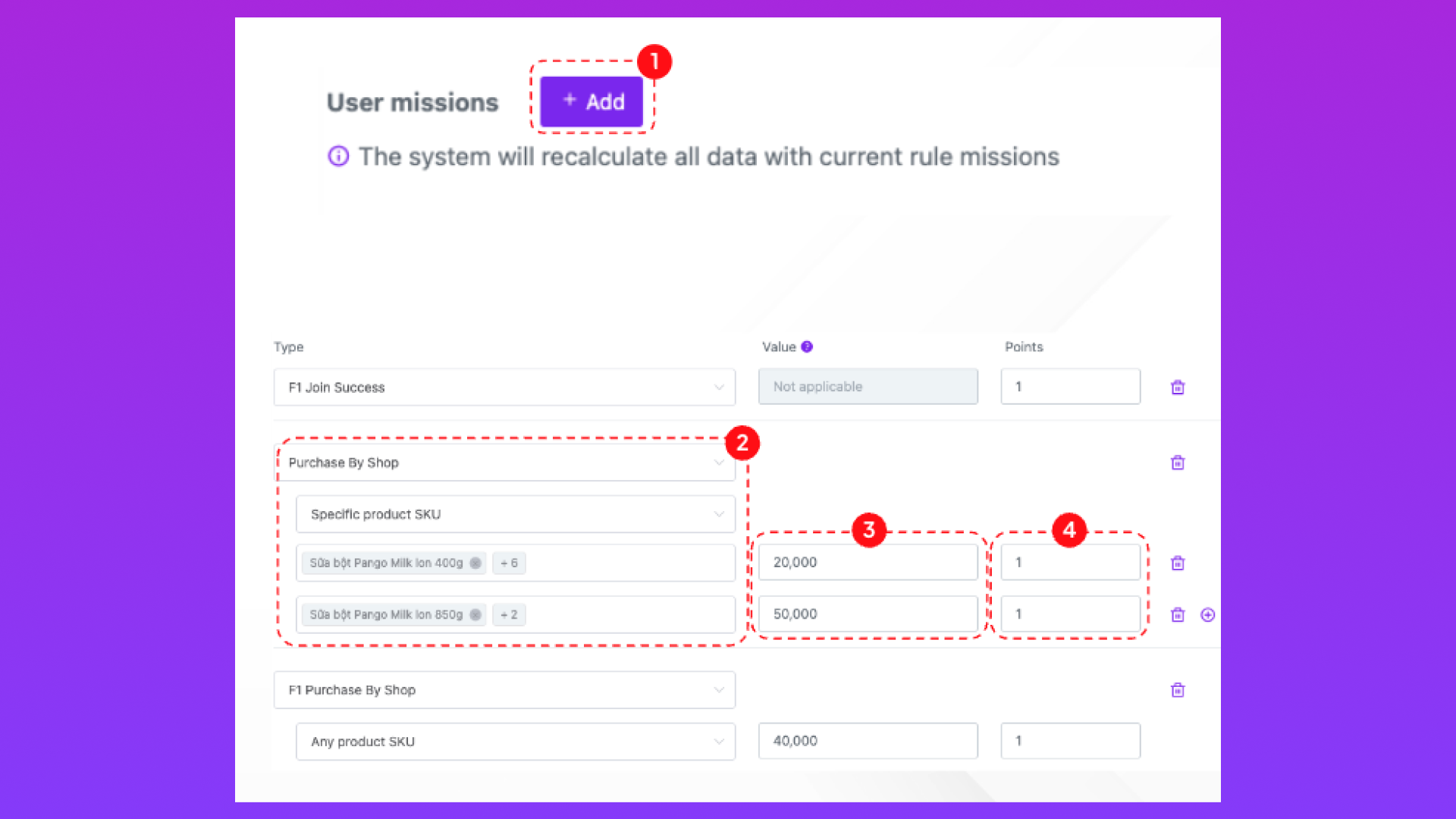 Tạo nhiệm vụ cộng điểm cho Campaign bao gồm các bước: