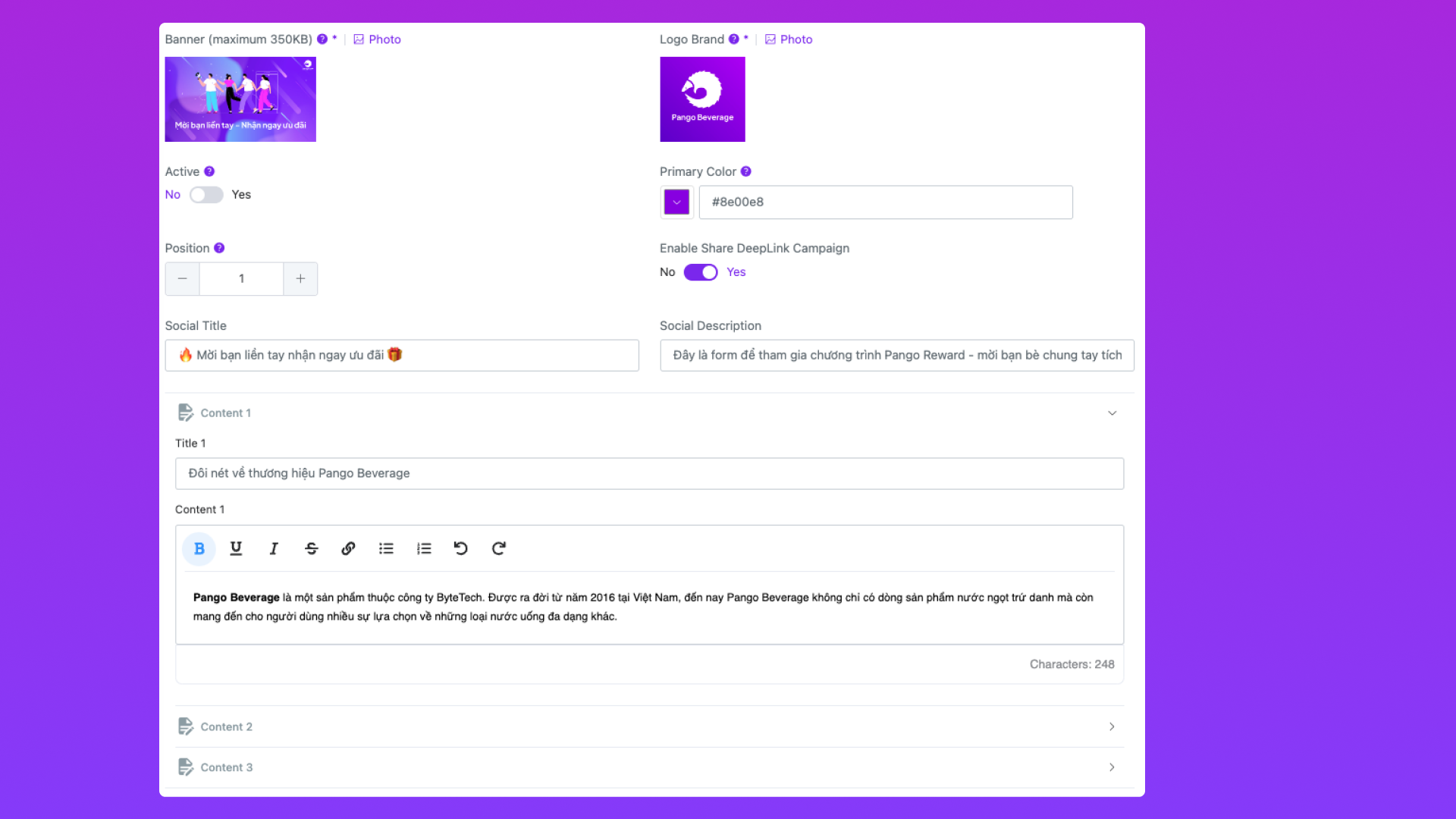2.3/ Cấu hình thông tin Campaign