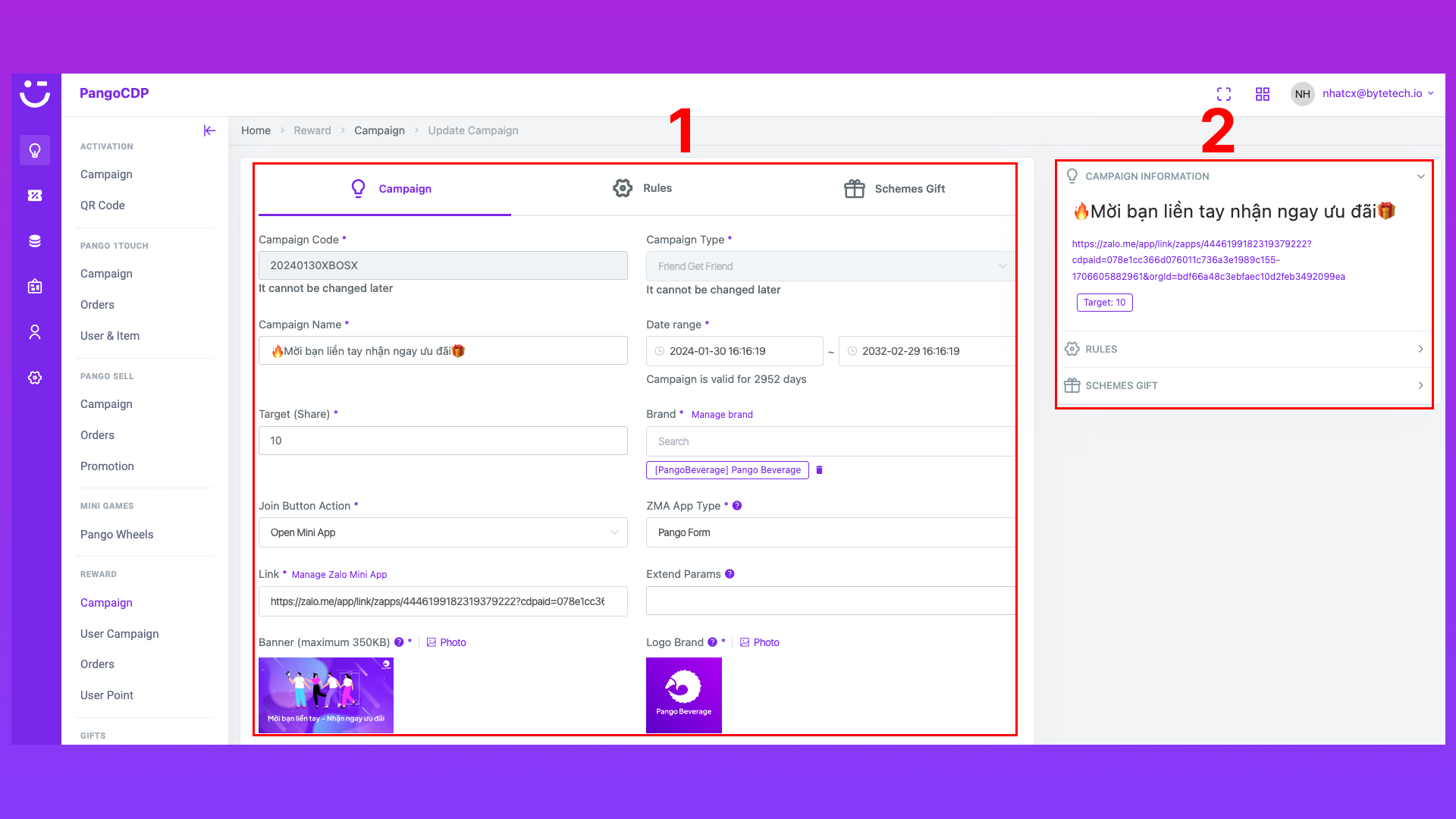 Tài liệu hướng dẫn bạn cách nhập dữ liệu và ý nghĩa các trường dữ liệu trong cửa sổ Rules - Pango Reward tại PangoCDP.