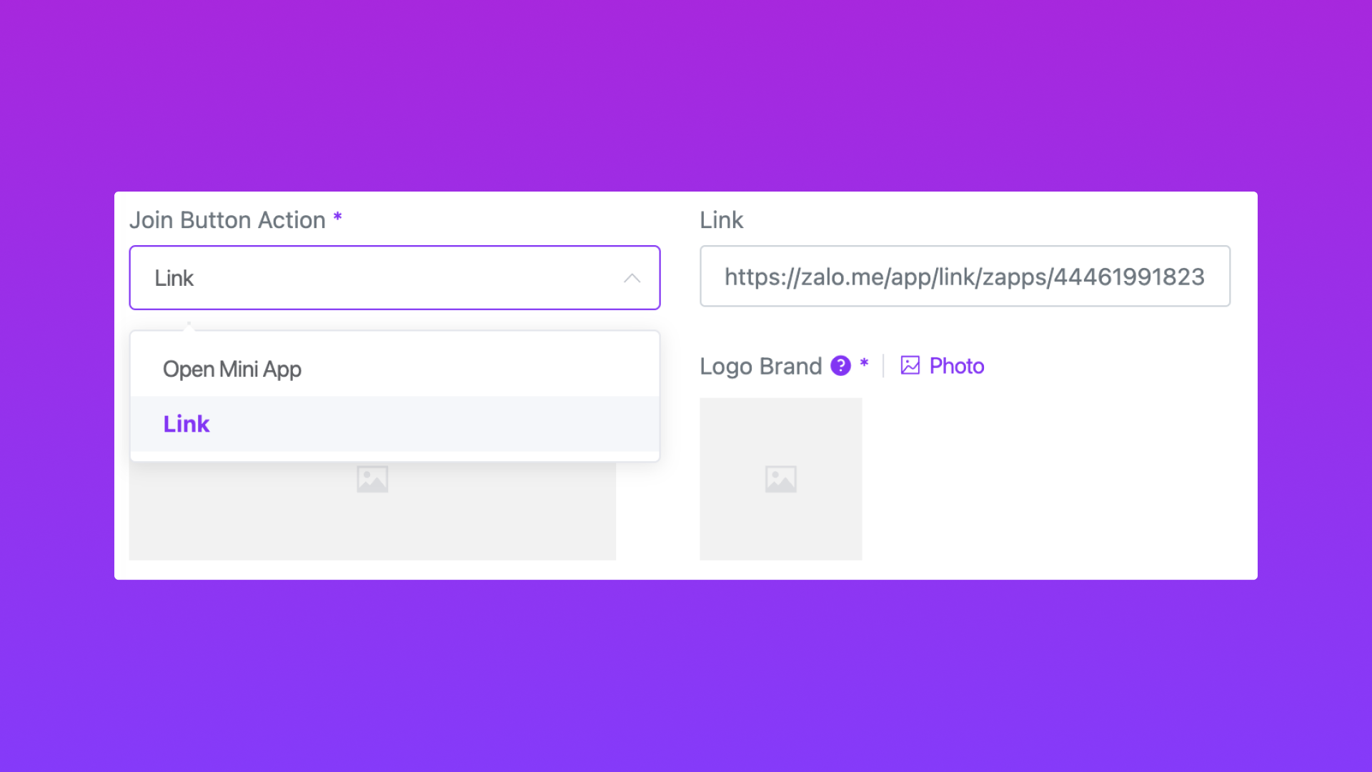 Join Button Action = "Link" :
