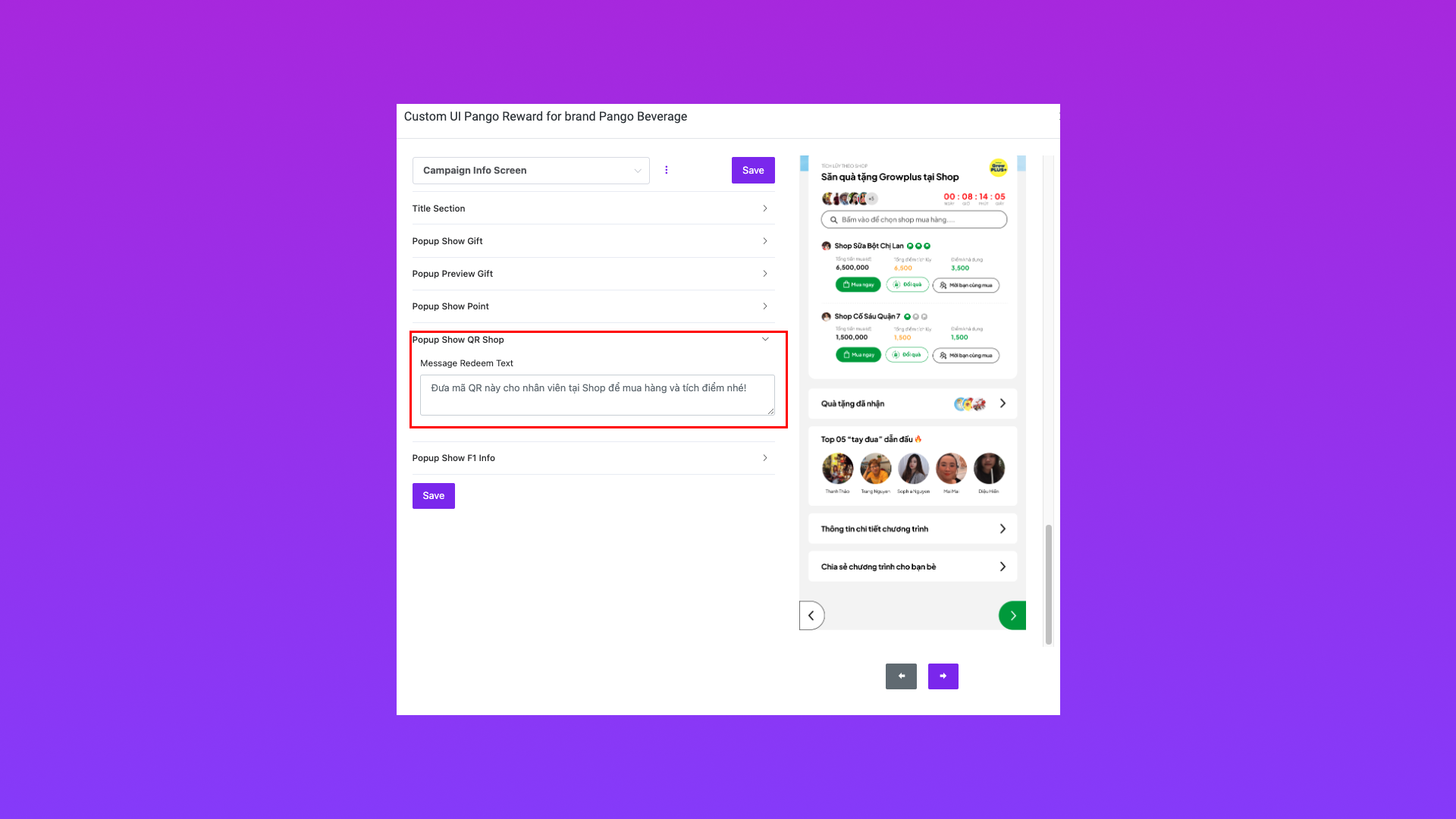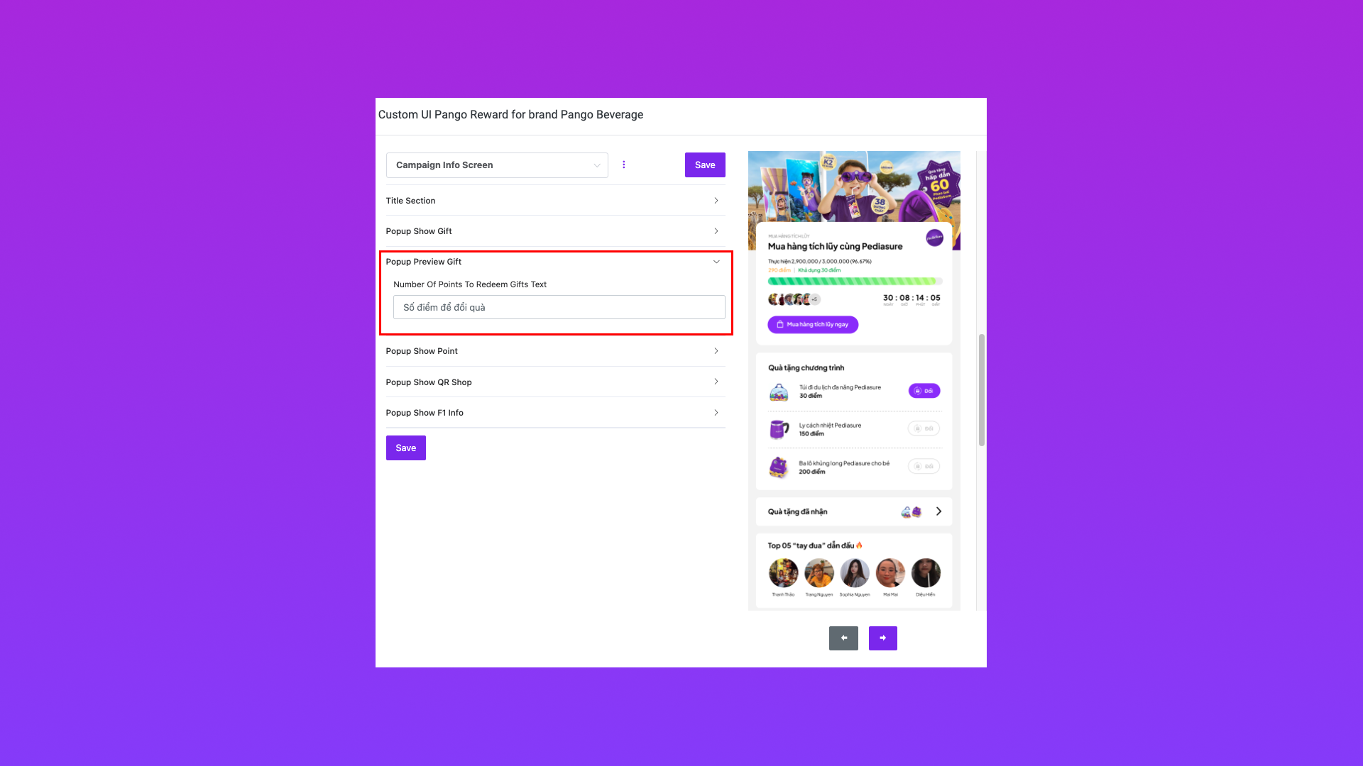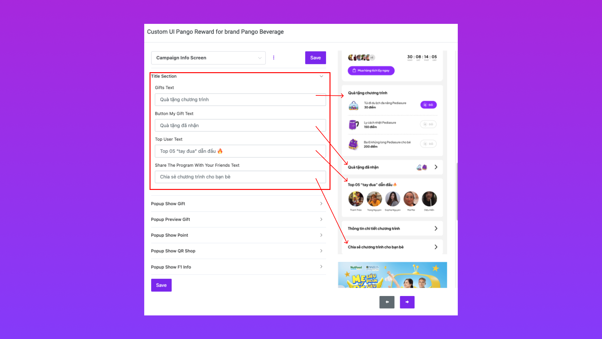 Tài liệu hướng dẫn bạn cách cấu hình Custom UI - Campaign Info Screen của Pango Reward tại PangoCDP.