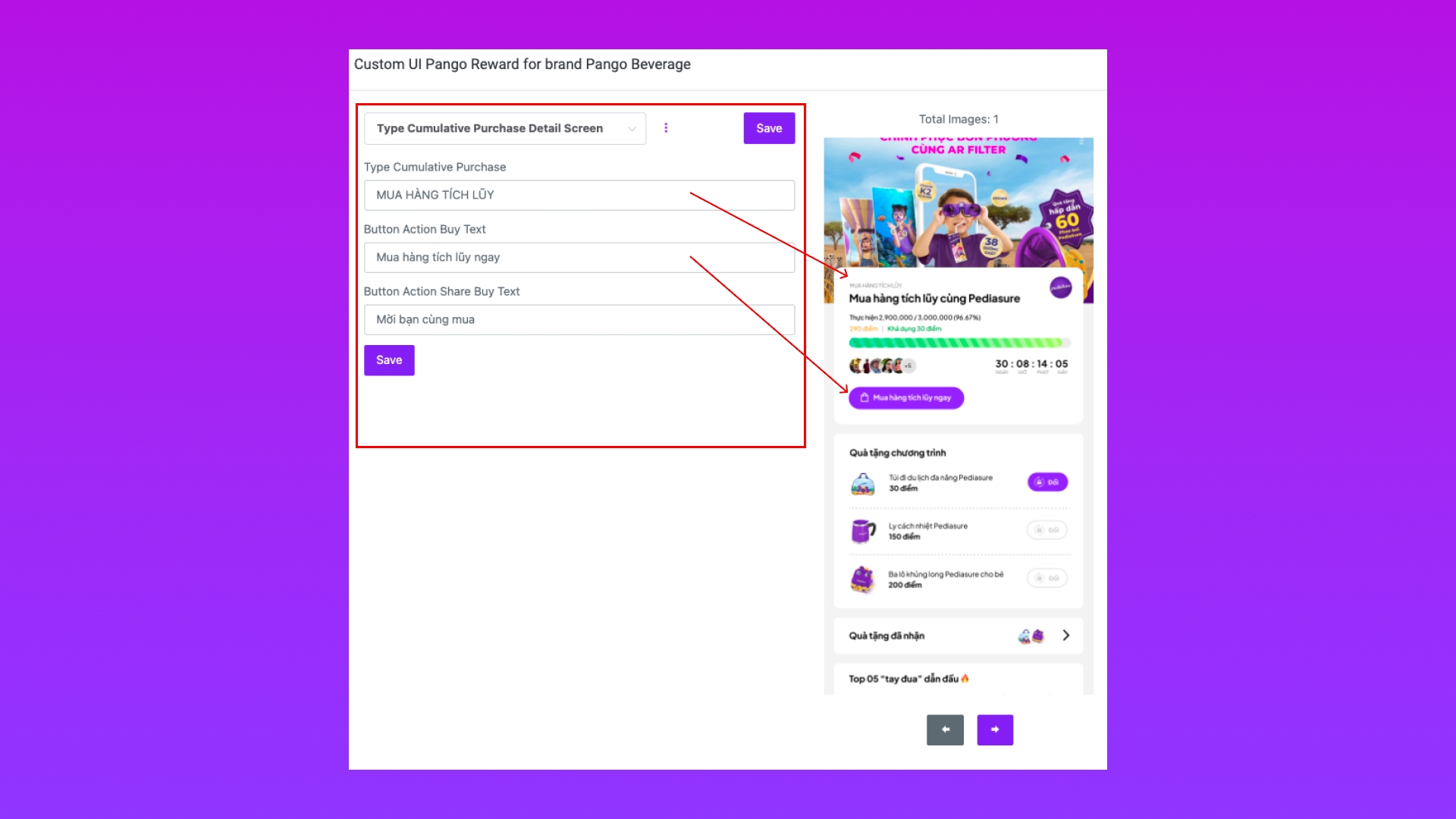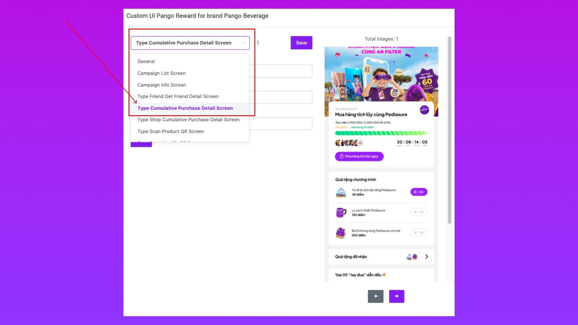 Tài liệu hướng dẫn bạn cách cấu hình Custom UI - Type Cumulative Purchase Detail Screen của Pango Reward tại PangoCDP.