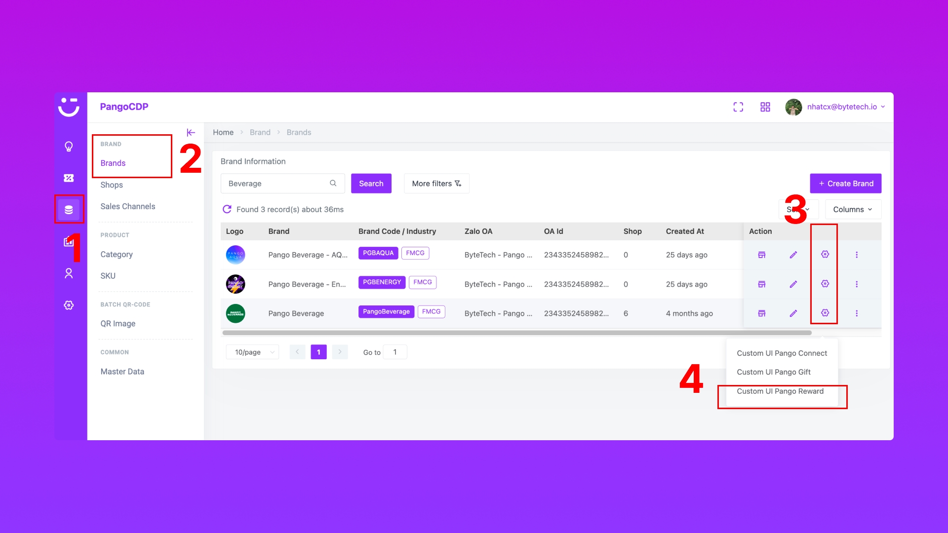 Bước 2: Truy cập vào Brand - Custom UI Reward