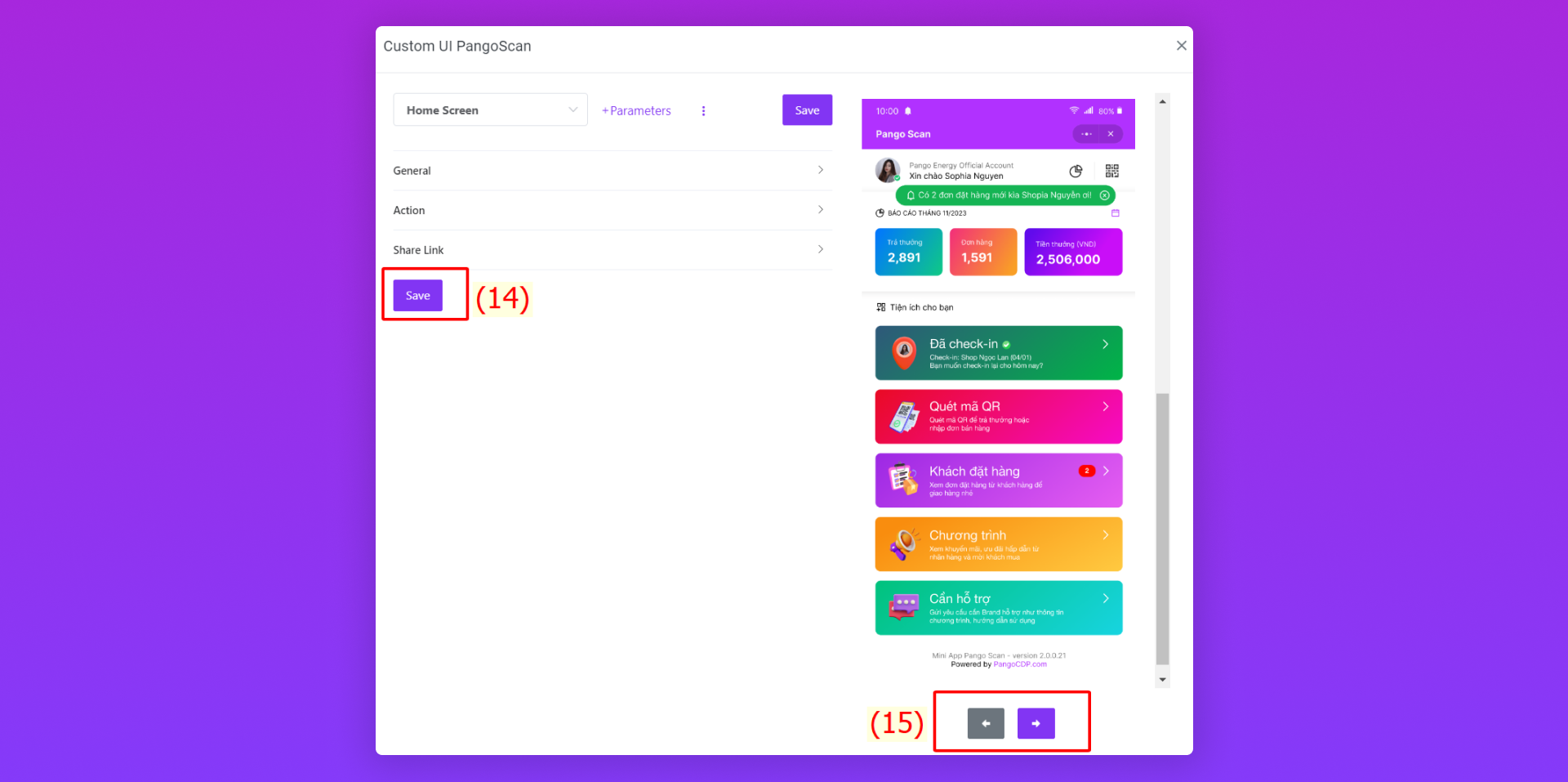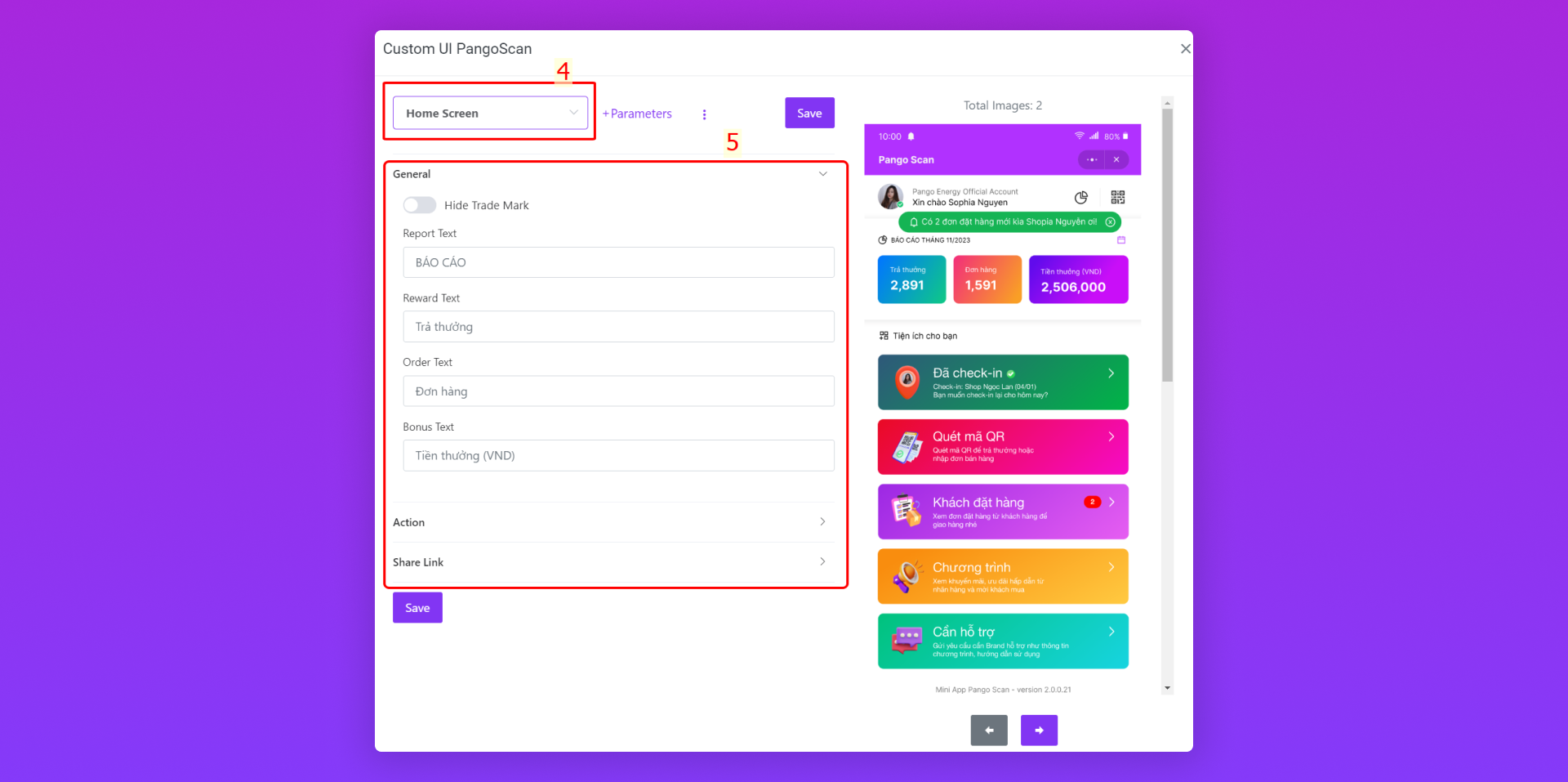 Bước 2: Thiết lập Custom UI của Home Screen trên PangoScan