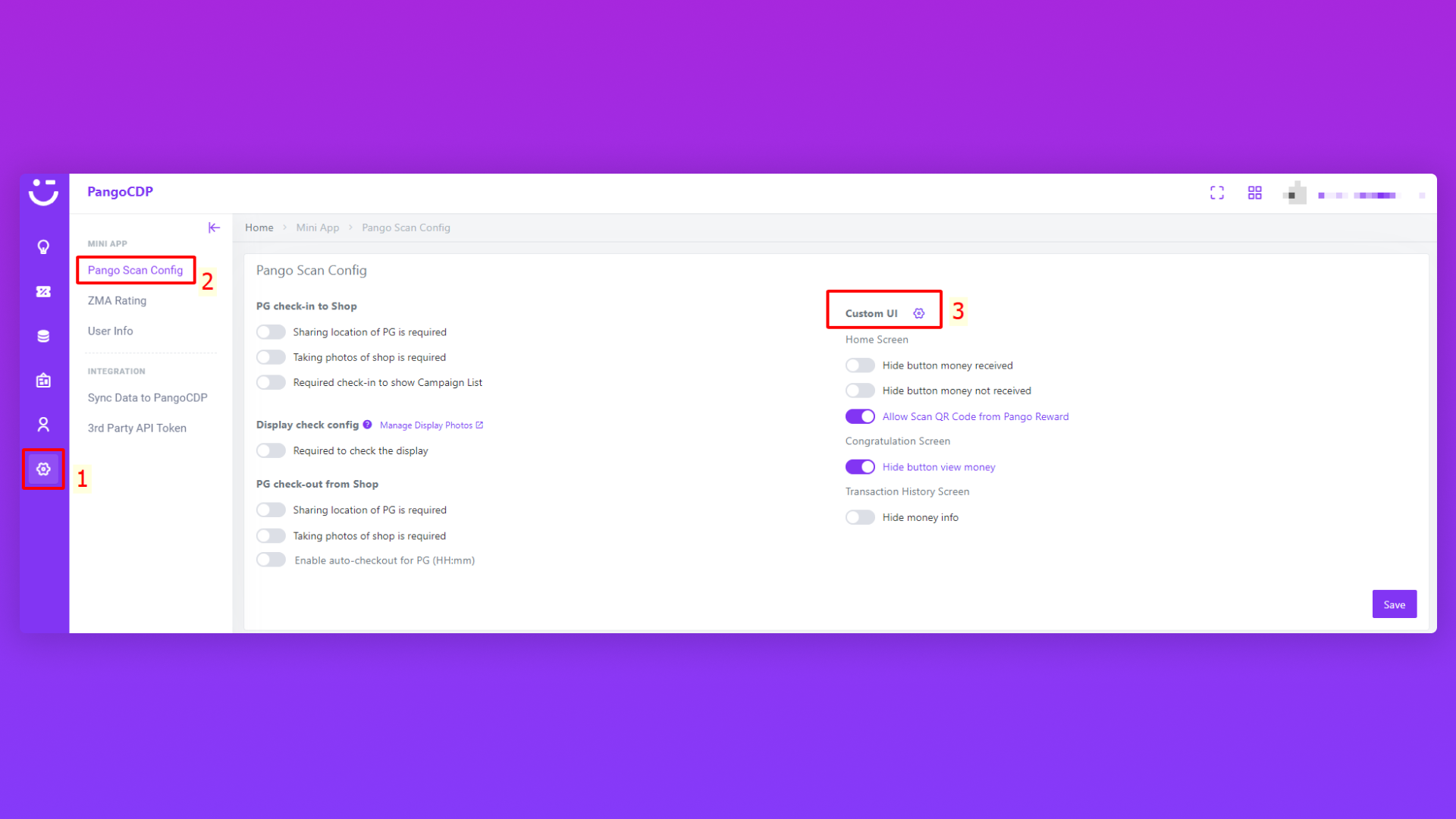 Bước 1: Truy cập vào Custom UI của Pango Scan