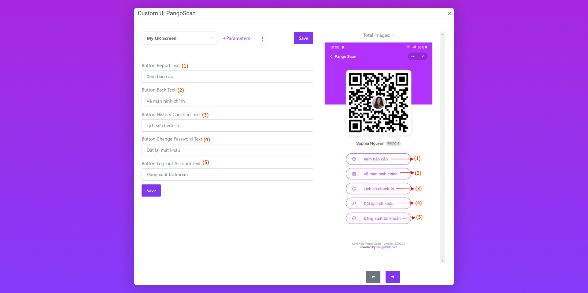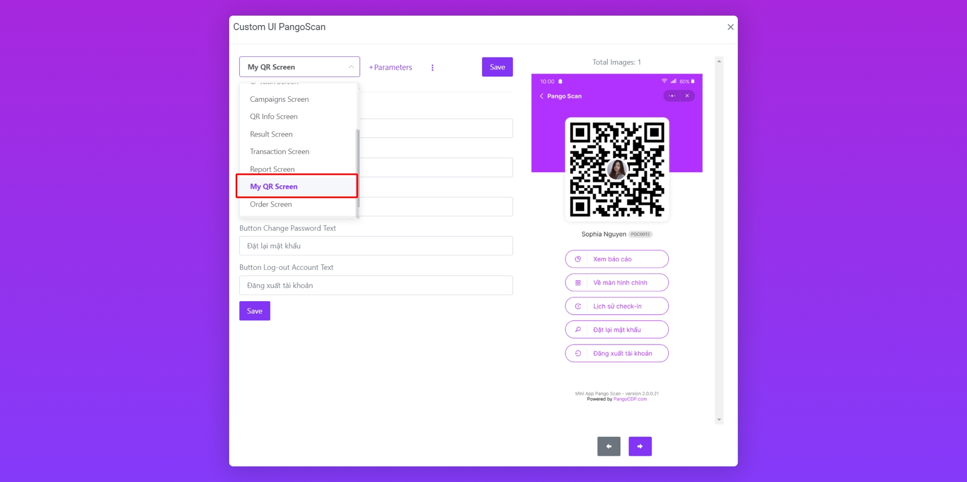 Bước 2: Thiết lập Custom UI của My QR Screen trên Pango Scan