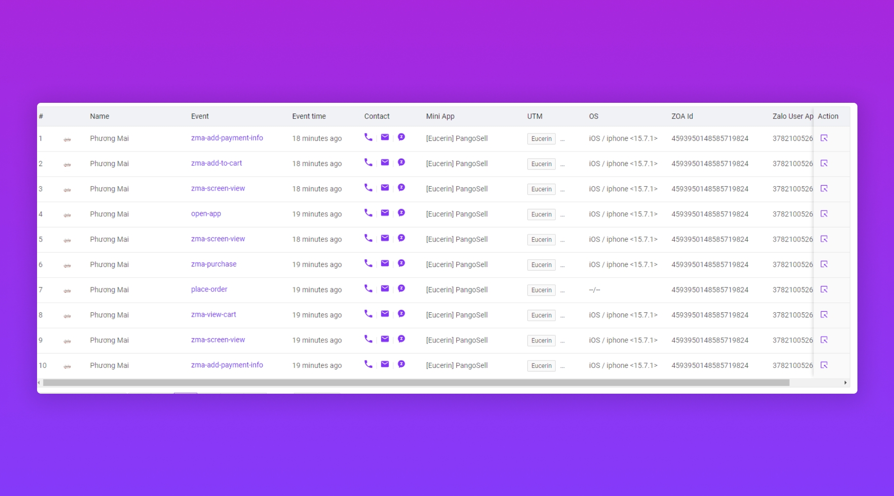 Tài liệu giúp bạn hiểu được các User Activities trên app PangoSell sẽ sinh ra các event tương ứng trong ZMA Logs trên PangoCDP.
