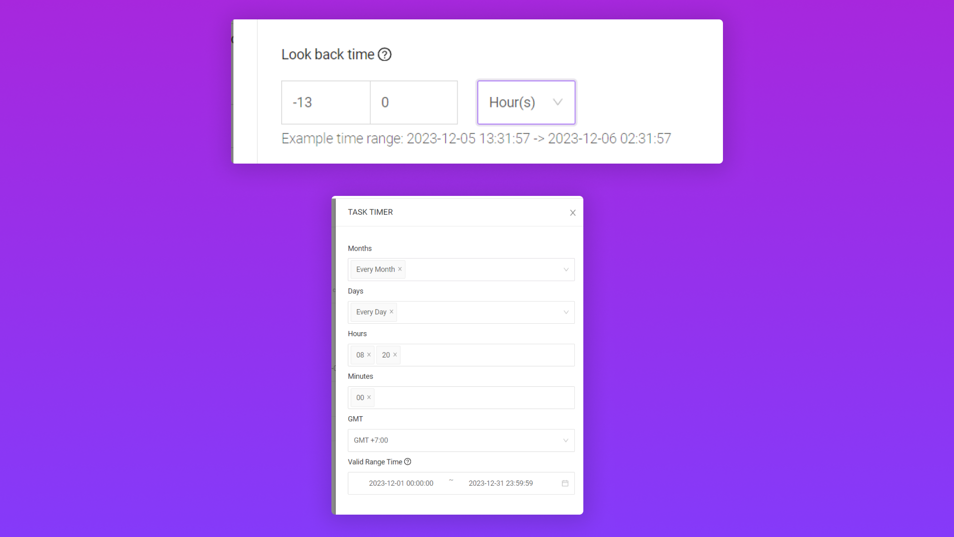 Chọn look back time rồi chọn “Config Schedule” để cấu hình lịch chạy