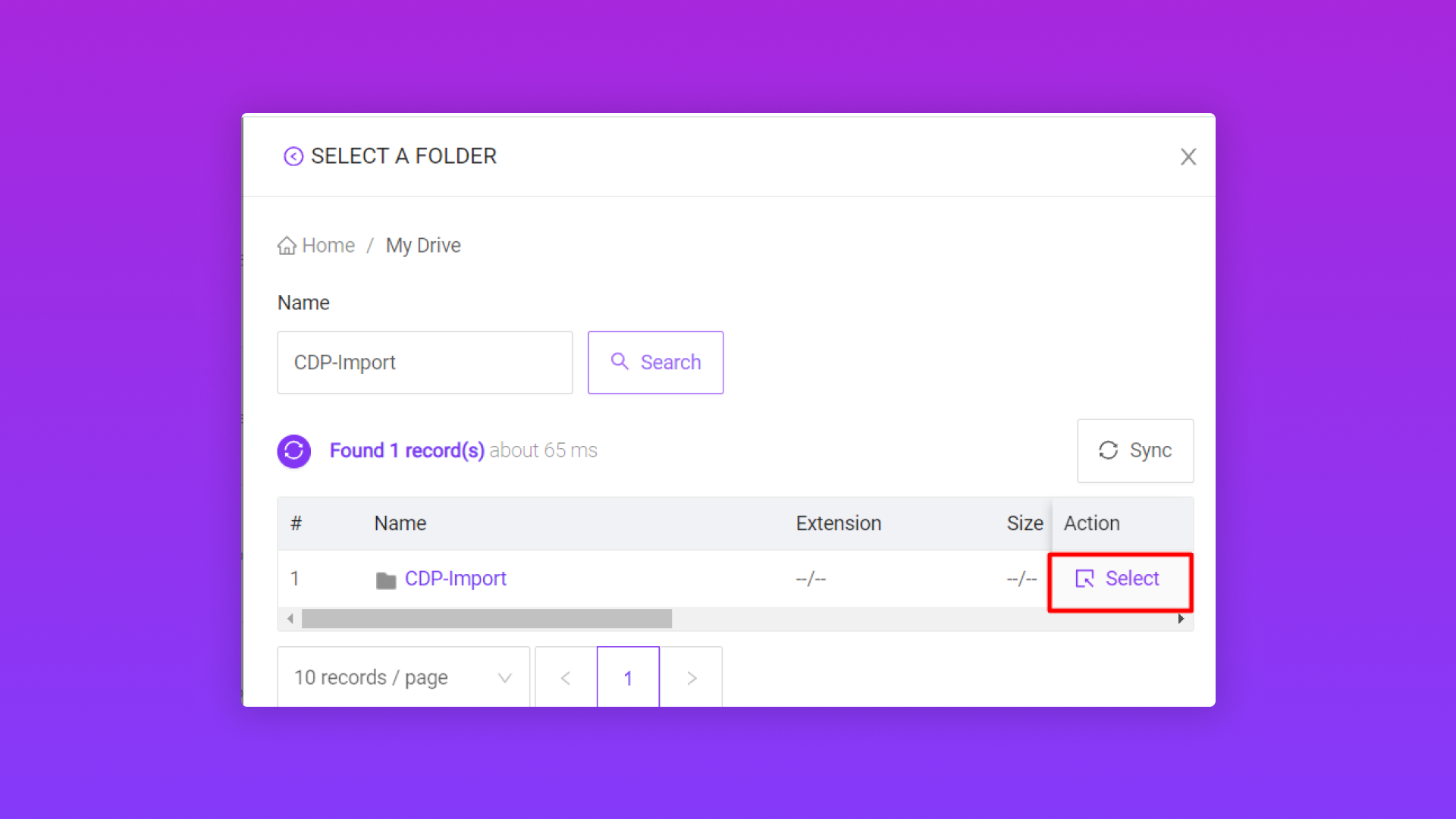 Chọn file sẽ được đẩy data vào model và sync data để Pango CDP cập nhật data trên Google Drive nếu ở đó chưa có records nào