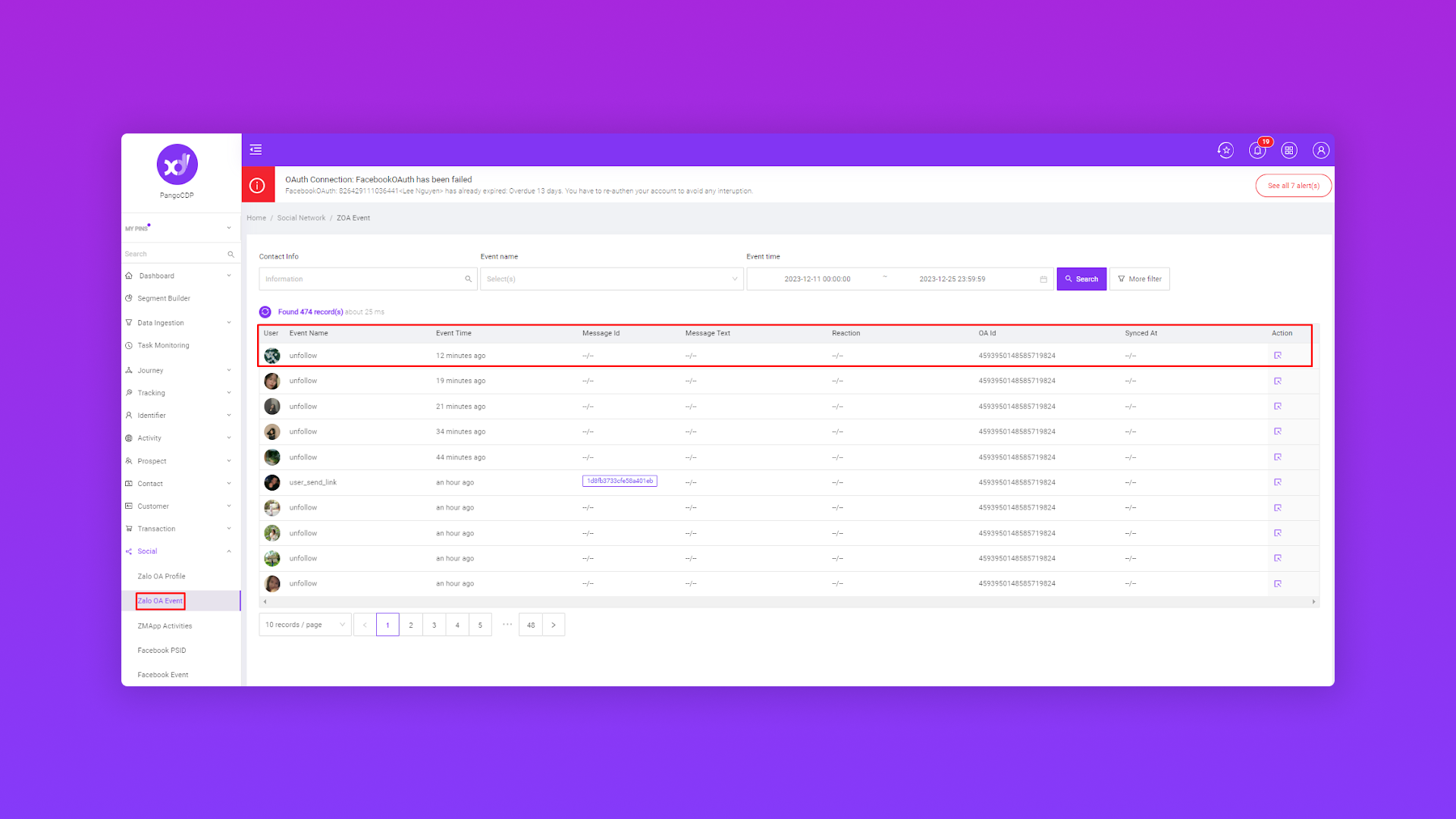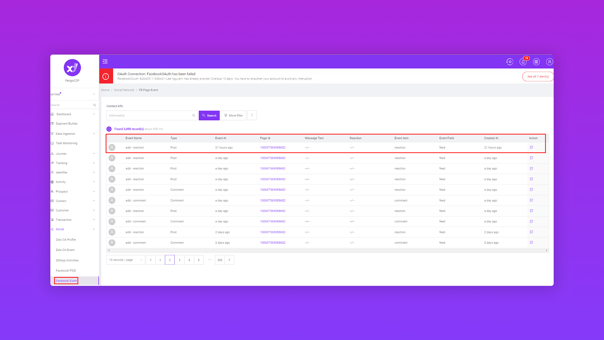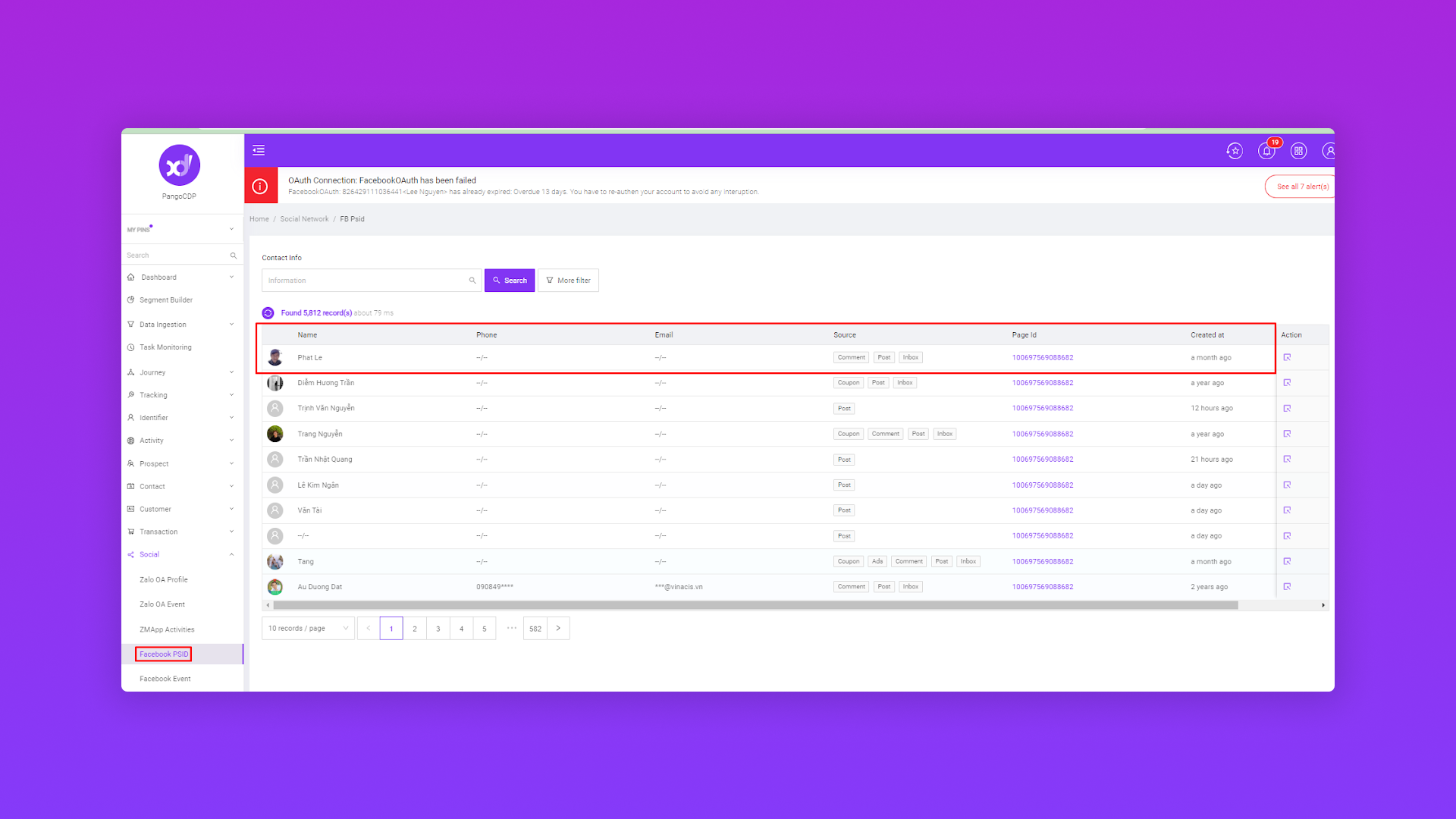 Tài liệu giúp bạn hiểu rõ được các loại dữ liệu được tích hợp từ các kênh social vào hệ thống PangoCDP