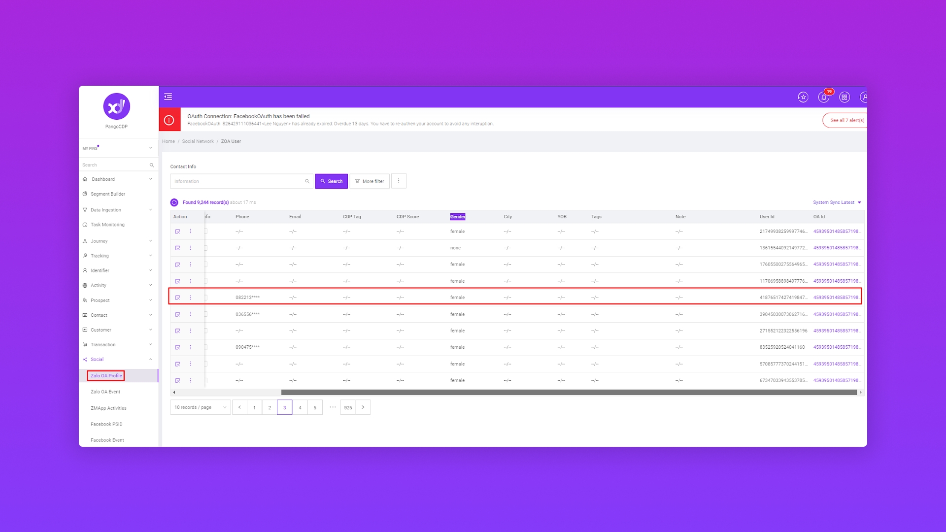 Người dùng Zalo có thông tin cá nhân hay chưa có (phụ thuộc vào phía Zalo trả về bên PangoCDP)