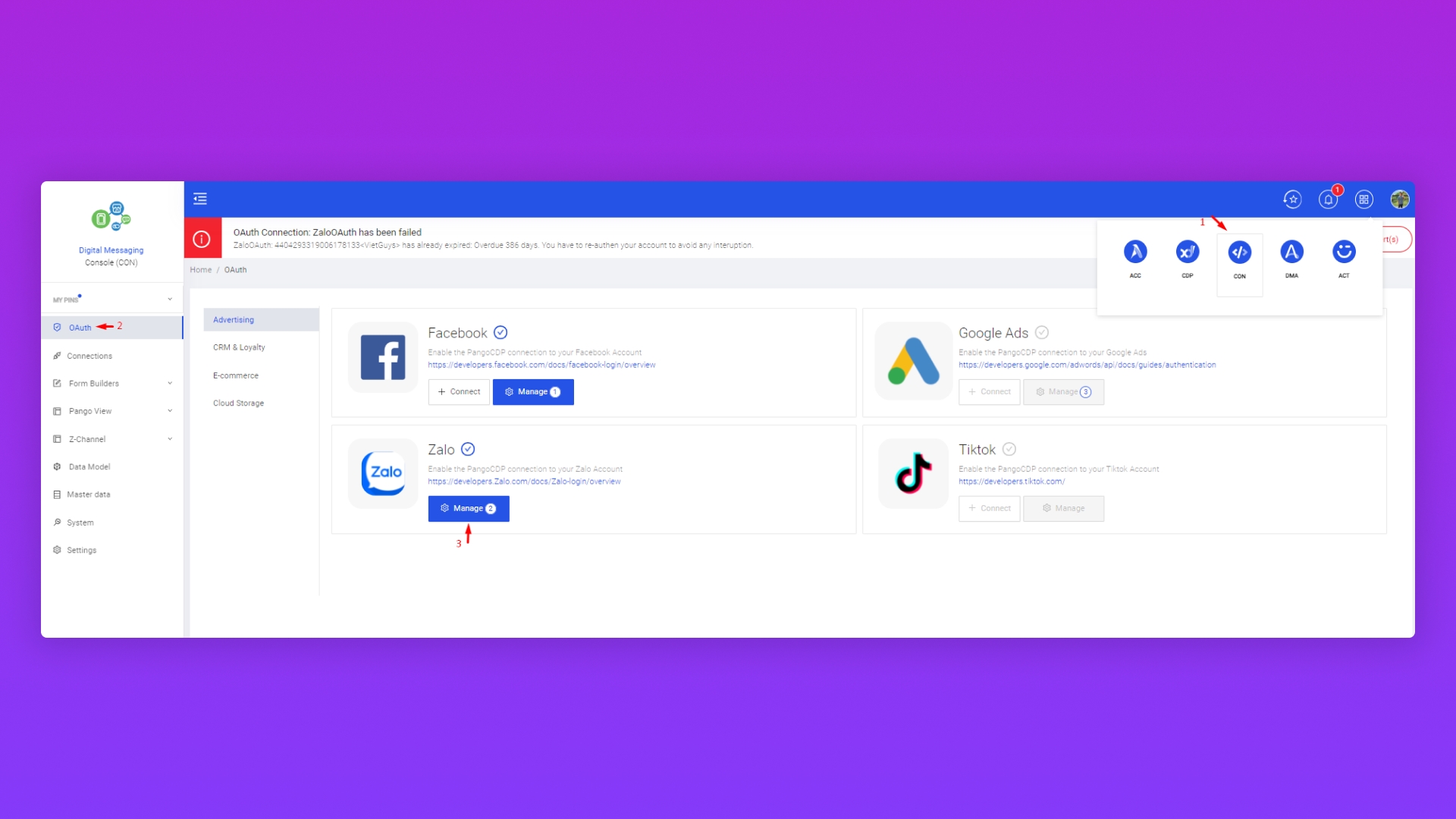 Tài liệu hướng dẫn bạn thao tác tạo xác thực OAuth Zalo trên PangoCDP