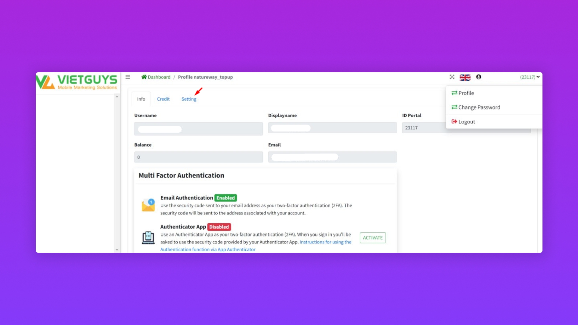 Bước 2: Truy cập vào trang quản trị tài khoản kết nối API Topup