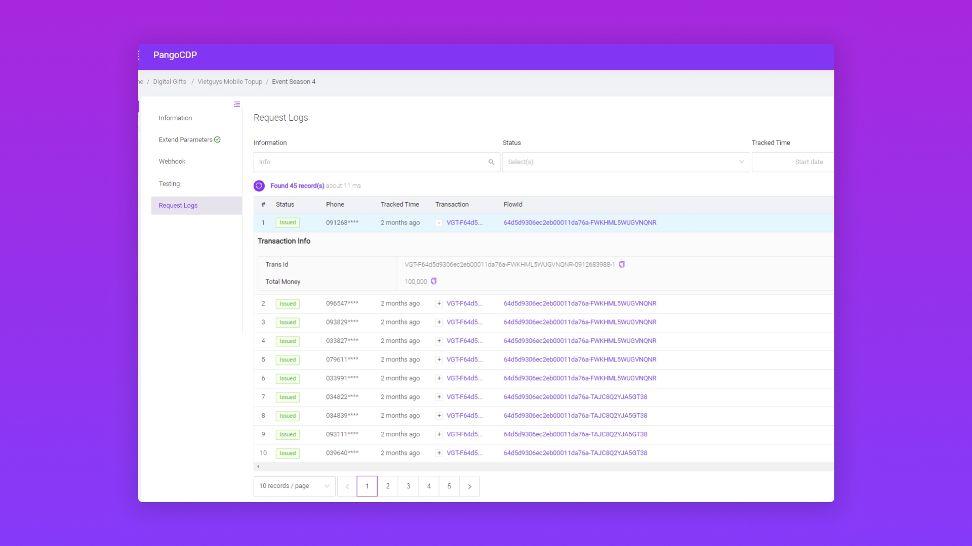 Gửi lại phía PangoCDP để hỗ trợ Access Token, hoặc cũng có thể tham khảo tại link access-token.
