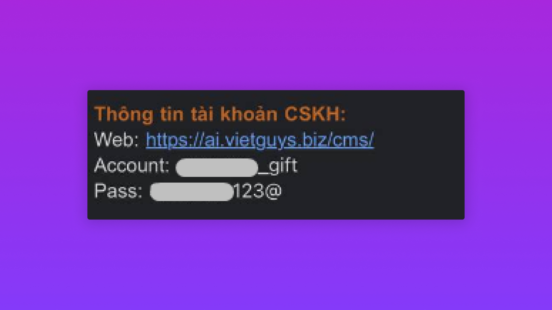 Là thông tin passcode do bên VGs sẽ cung cấp.