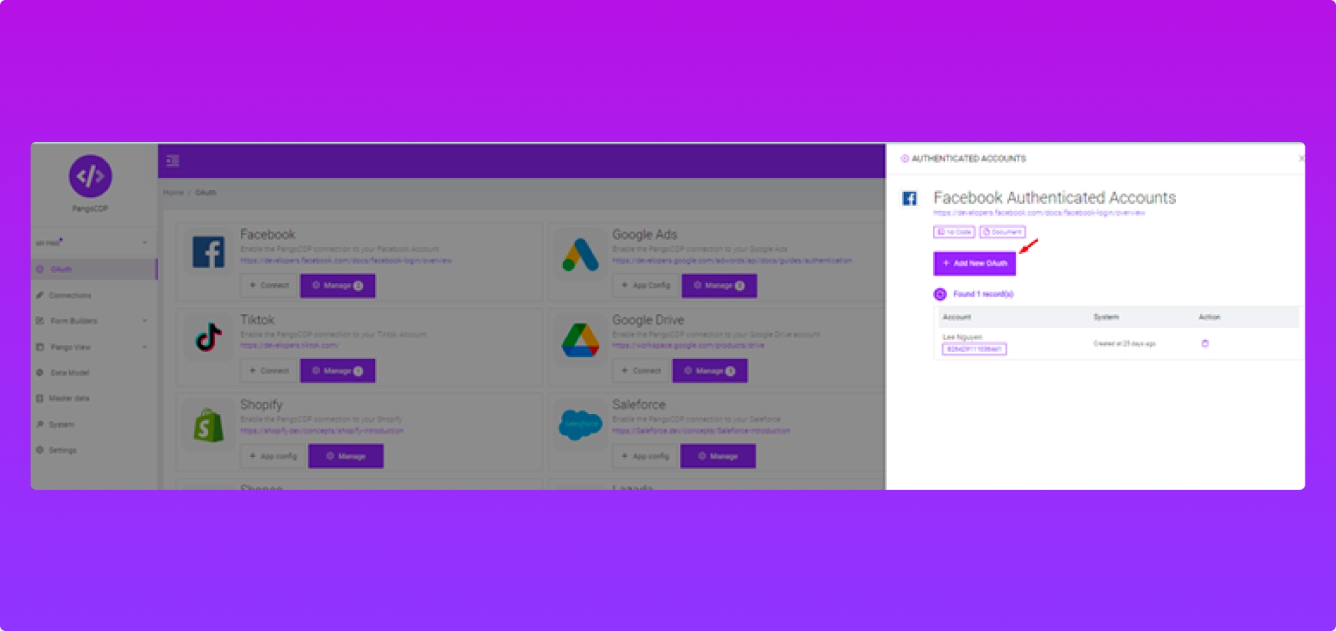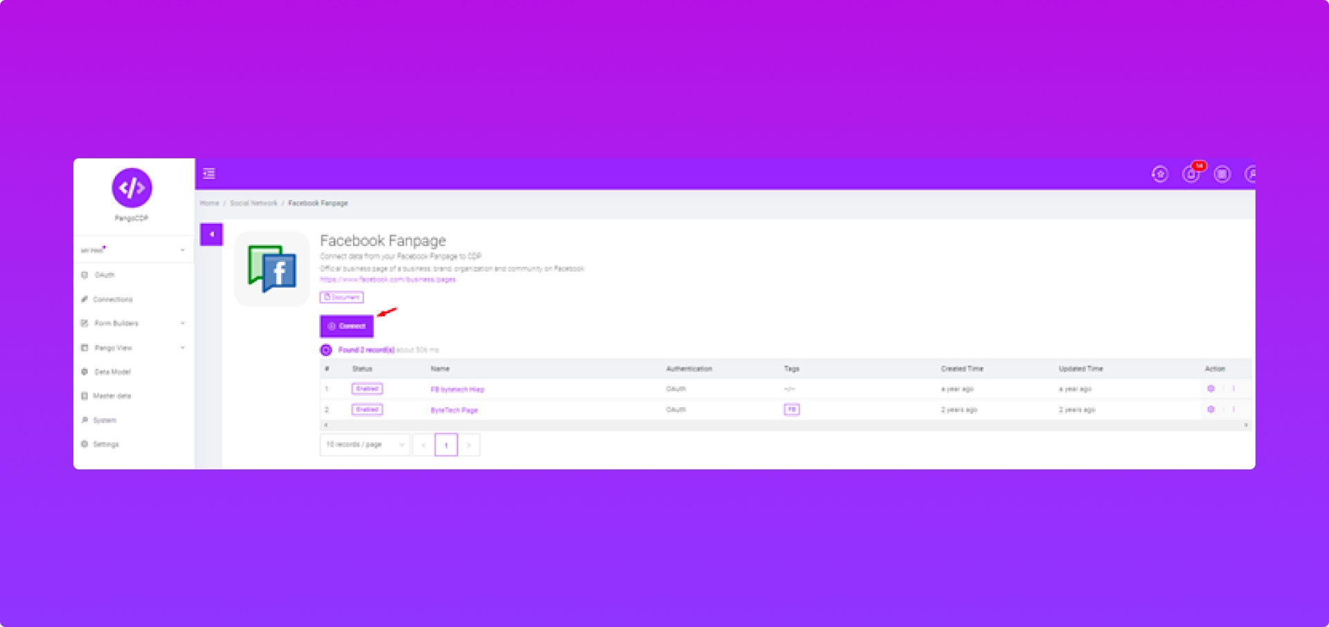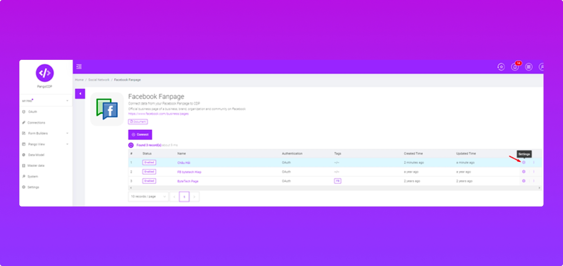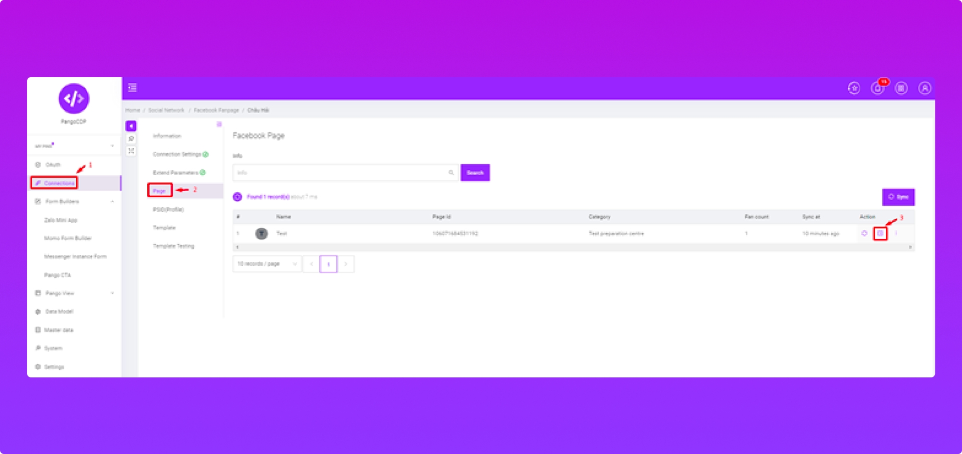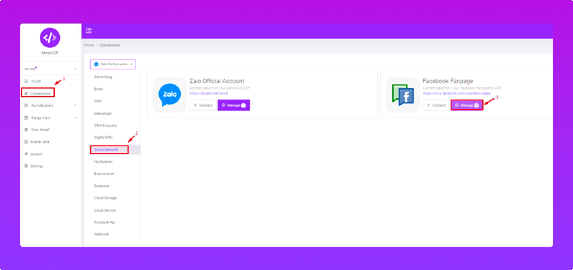 Bước 2: Kết nối Fanpage với PangoCDP.