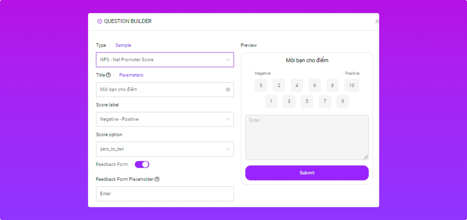 NPS: Net Promoter Score (type: Vote Rating by Number).