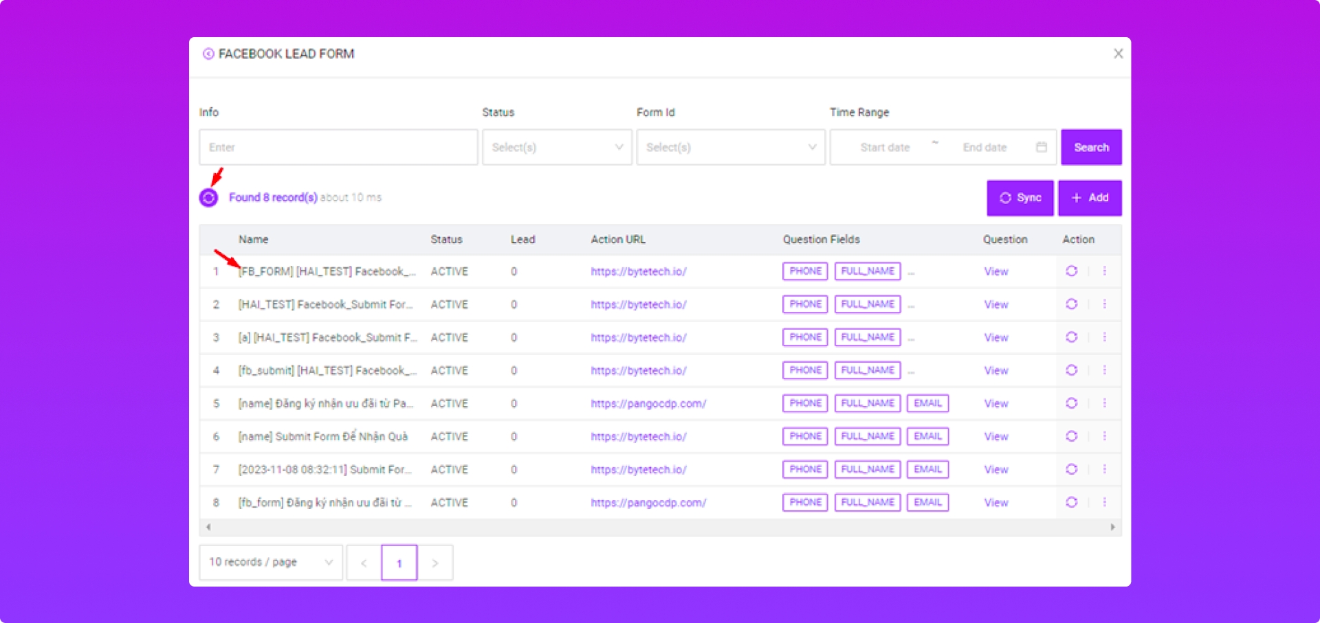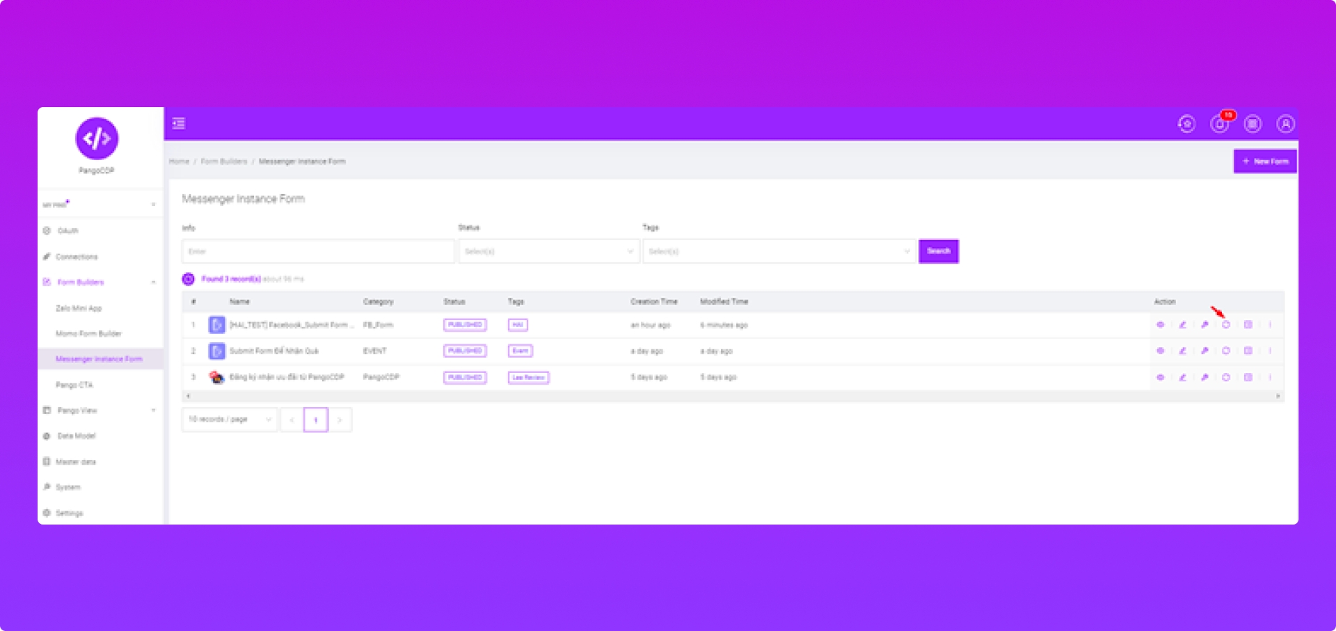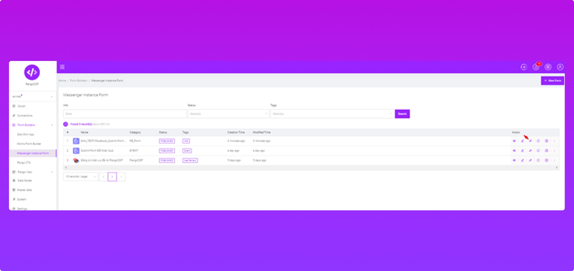 Sau khi đã tạo thông tin để Get Form thì mình sẽ sync về Form trên PangoCDP.