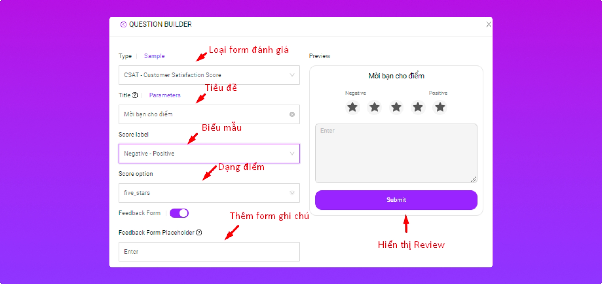 CSAT: Customer Satisfaction Score (type: Vote Rating by Star, Emotion, Number).