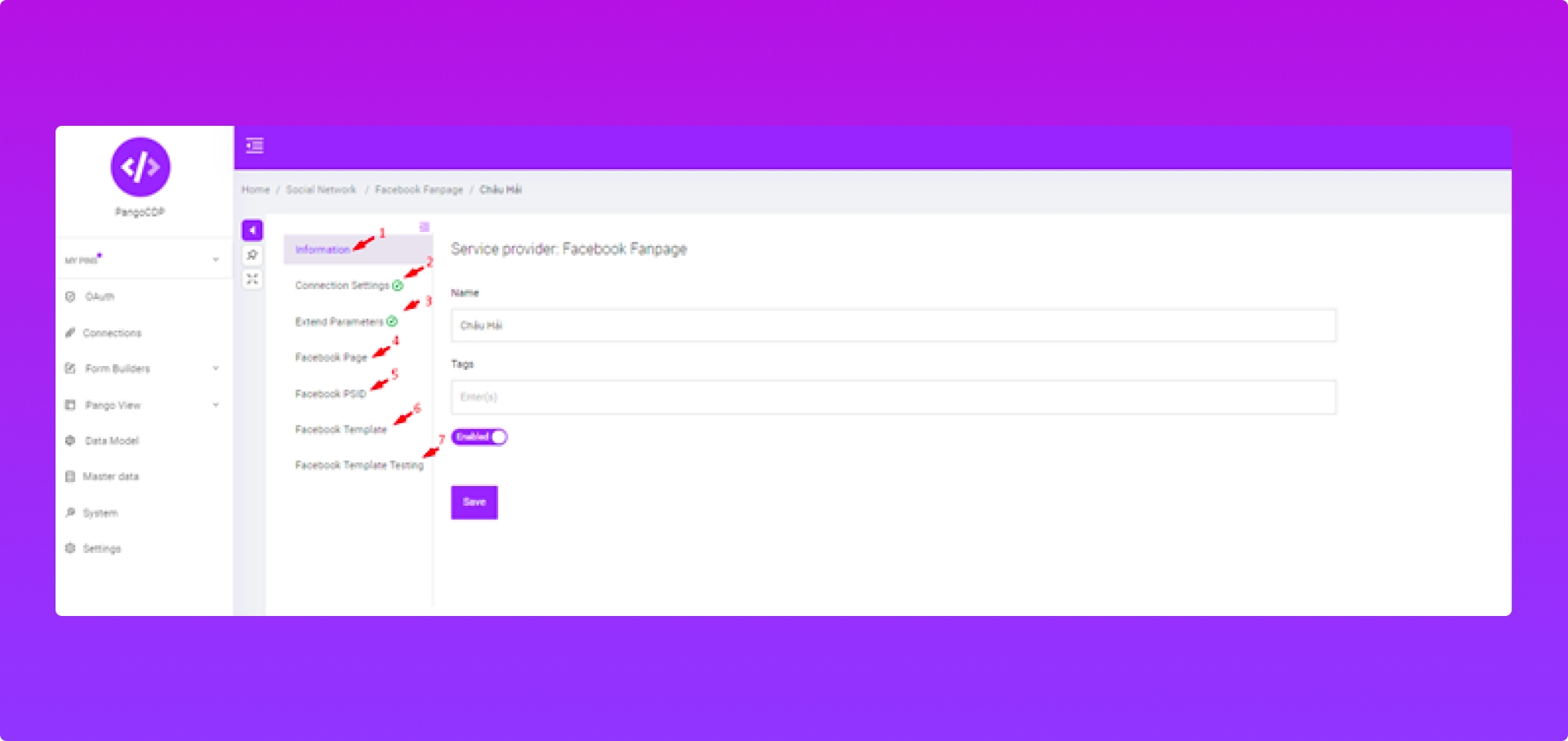 Bước 1: Khai báo Fanpage vào PangoCDP.