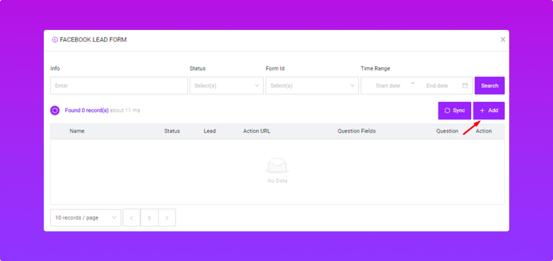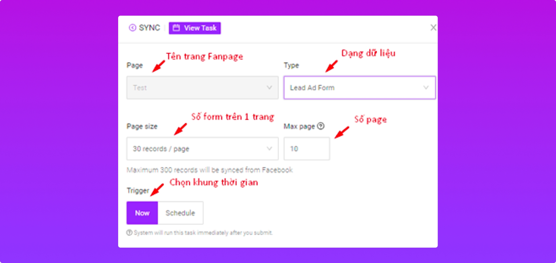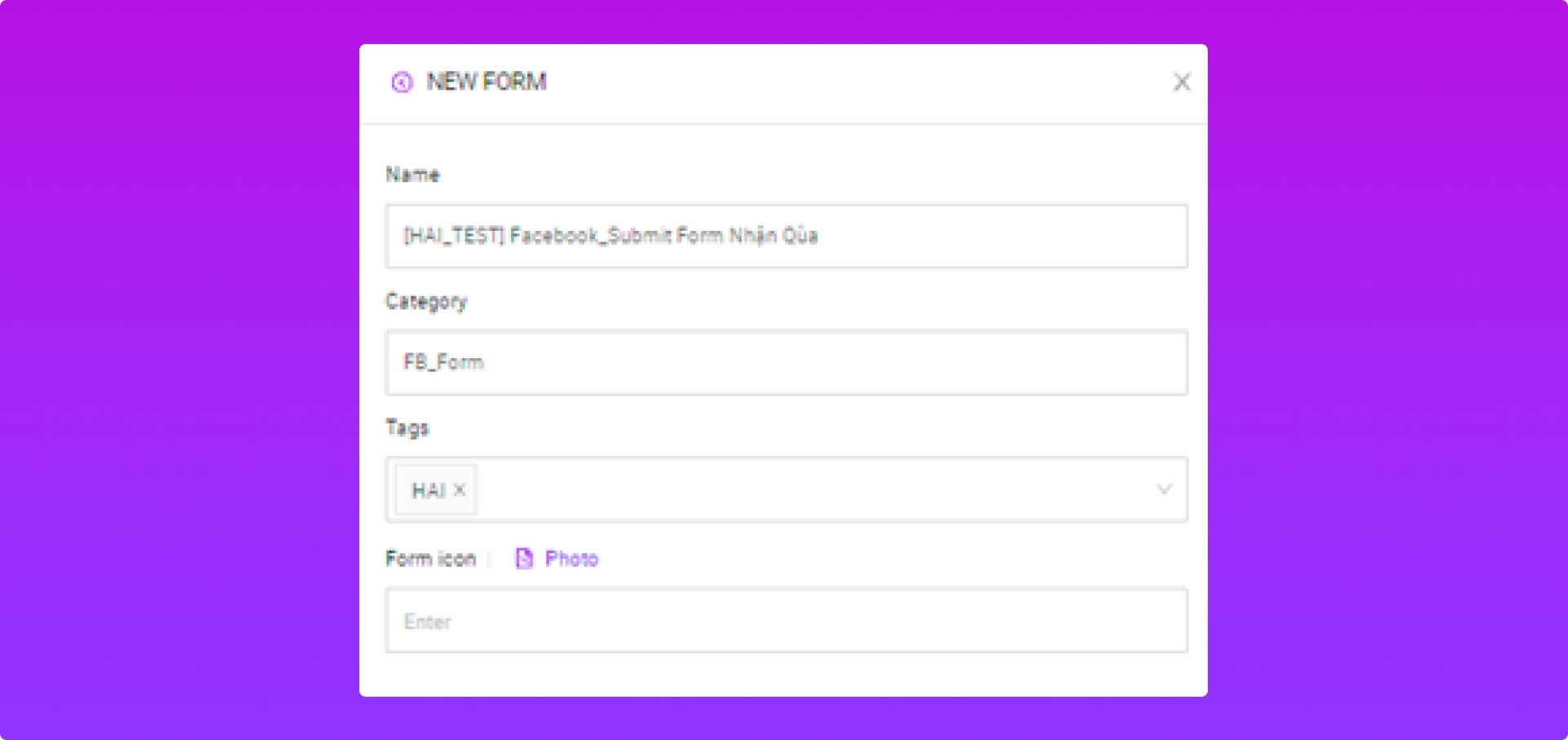 Tạo Form get value từ Form Fanpage đã được Push ở trên.