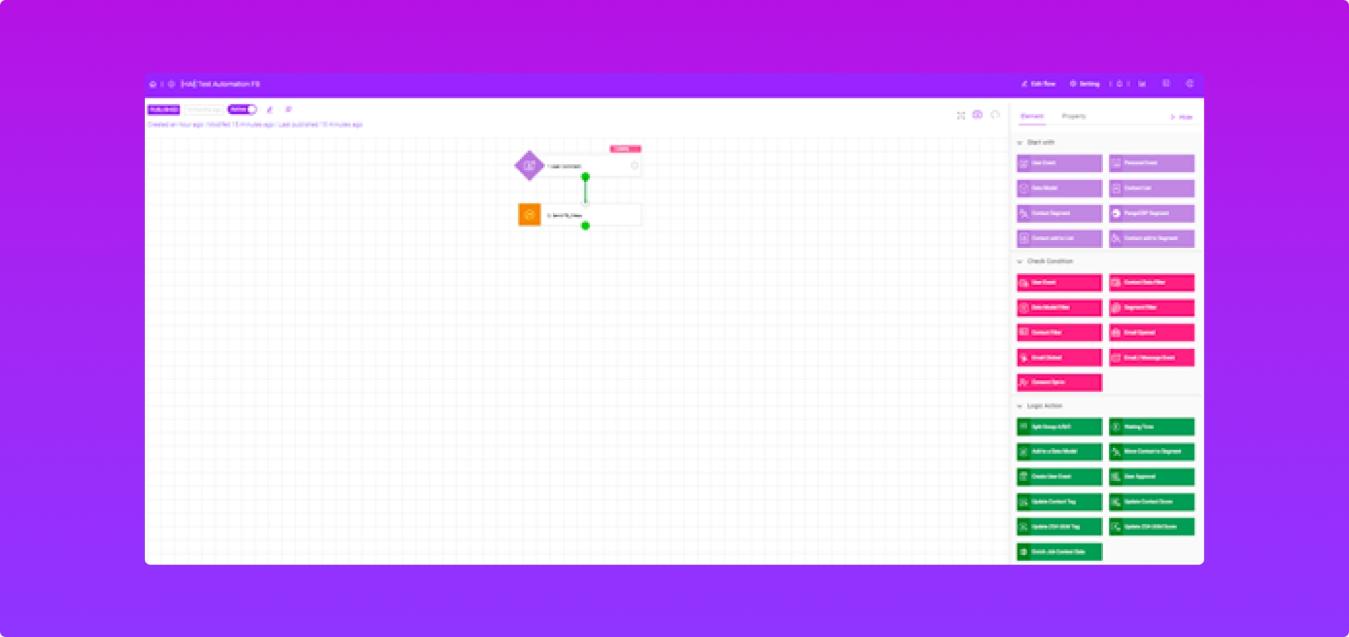 Để tạo được Flow thì tương tự Zalo_Miniapp Logs, vào trong DMA và chọn loại Element tương ứng.